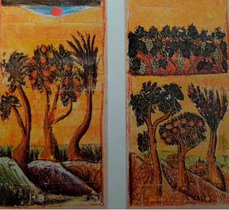 Μαύρες ελαίες οξομέλιτι και σίναπη (Μαύρες ελιές, ξίδι, μέλι, σινάπι) / Φασούλιον αλεστόν, δίεφθον οξομέλιτι (Φάβα μαυρομάτικων φασολιών, ξίδι, μέλι) / Φακή μεθ’ όξους, κοριάνδρου και ρου (Φακή, ξίδι, κόλιαντρο, ρους) / Σφουγγάτο (Αυγά σφουγγάτο) / Απάκι (Χοιρινό παστό και καπνιστό) / Άρτος μεταξωτός (Ψωμί φτιαγμένο με πολύ καλά κοσκινισμένο αλεύρι) / Παξαμάς (Παξιμάδι) / Χοιρινό με οξύμελι (Χοιρινό, ξίδι, μέλι) / Πληγούρι / Maghmuma (Μελιτζάνες, κρεμμύδια, αρνί, ξίδι, σαφράν, κόλιαντρο, κύμινο, κάρο, πιπέρι, κανέλα, πιπερόριζα)
