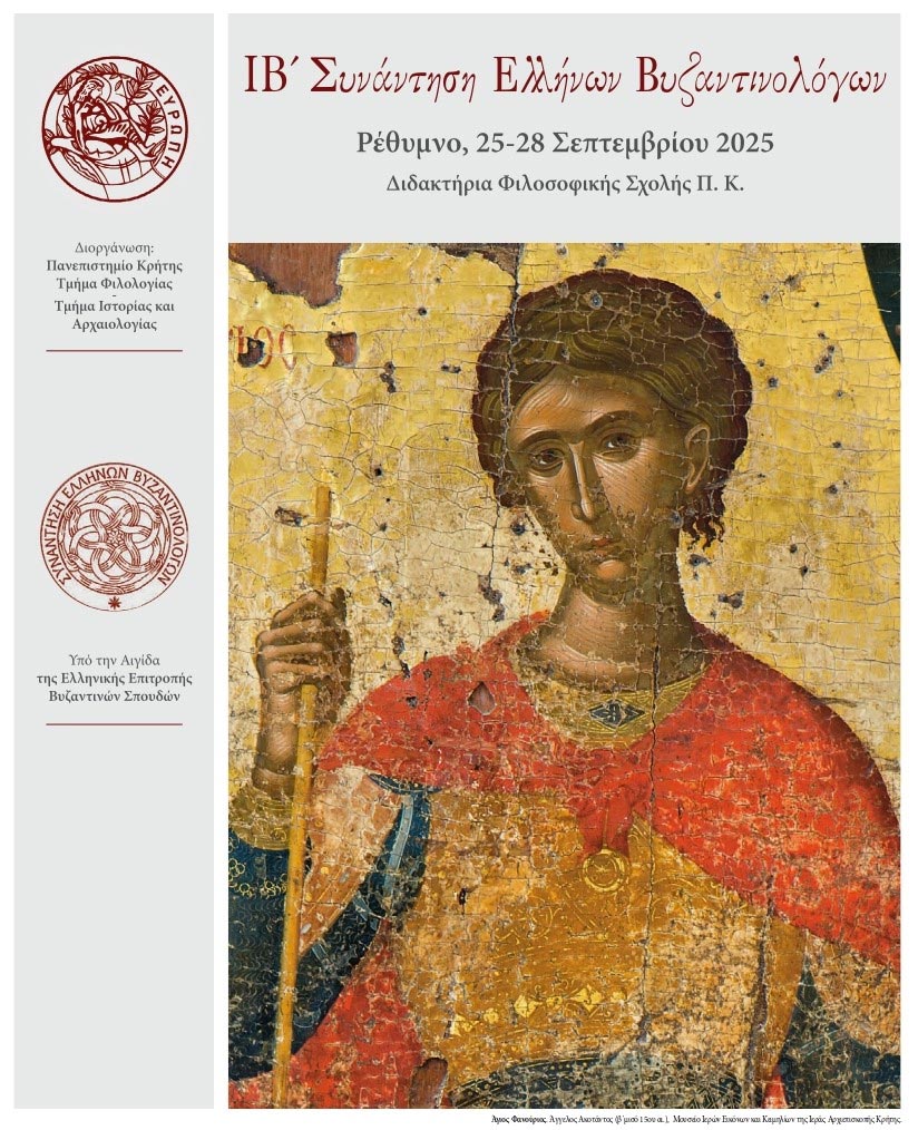 Τη ΙΒ’ Συνάντηση Ελλήνων Βυζαντινολόγων συνδιοργανώνουν το Τμήμα Φιλολογίας και το Τμήμα Ιστορίας και Αρχαιολογίας της Φιλοσοφικής Σχολής του Πανεπιστημίου Κρήτης.