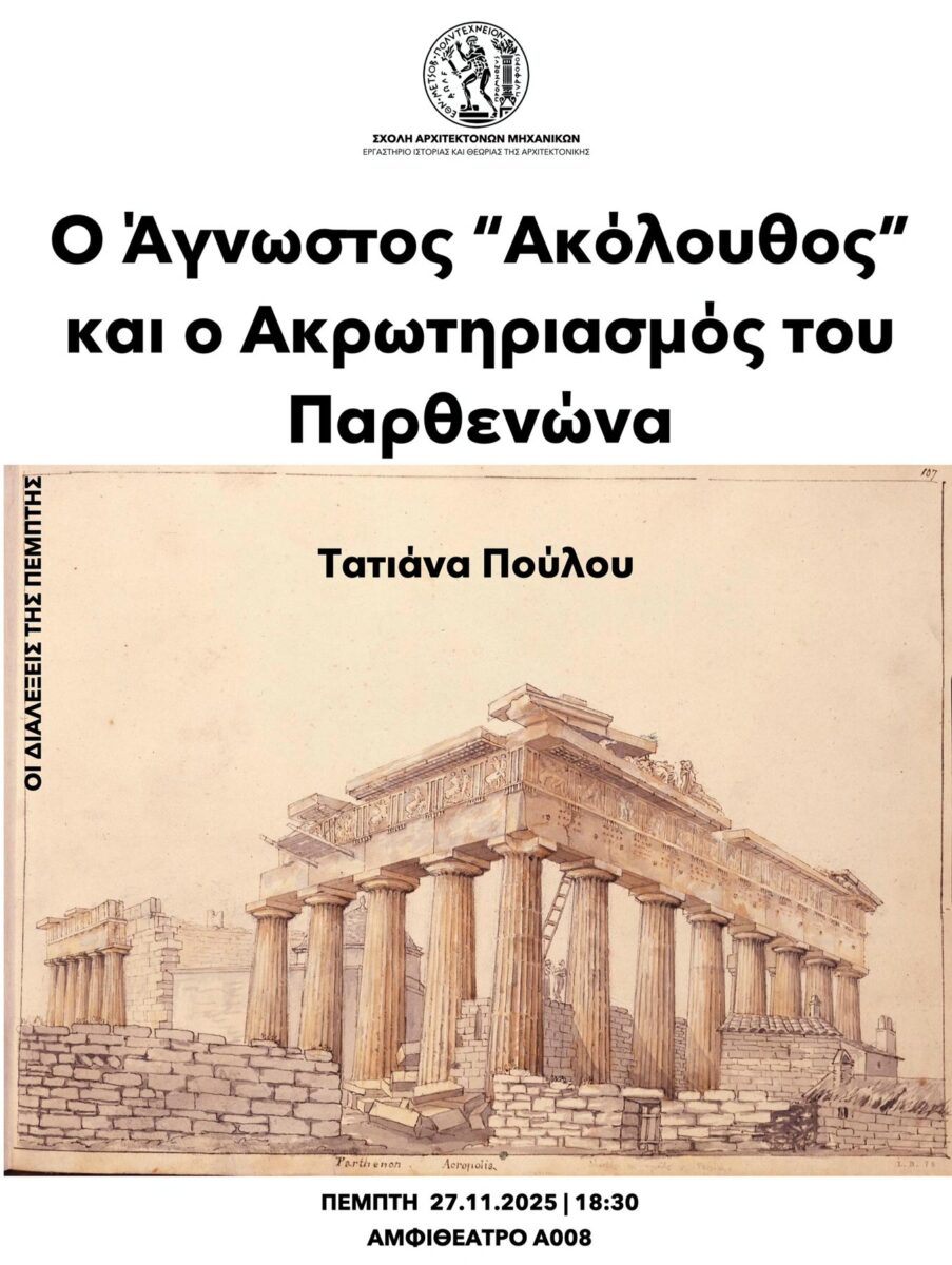 Η διάλεξη πραγματοποιείται στο πλαίσιο της σειράς διαλέξεων με τίτλο «Διαλέξεις της Πέμπτης» που διοργανώνει το Εργαστήριο της Ιστορίας και Θεωρίας της Αρχιτεκτονικής της Σχολής Αρχιτεκτόνων Μηχανικών του Εθνικού Μετσοβίου Πολυτεχνείου.