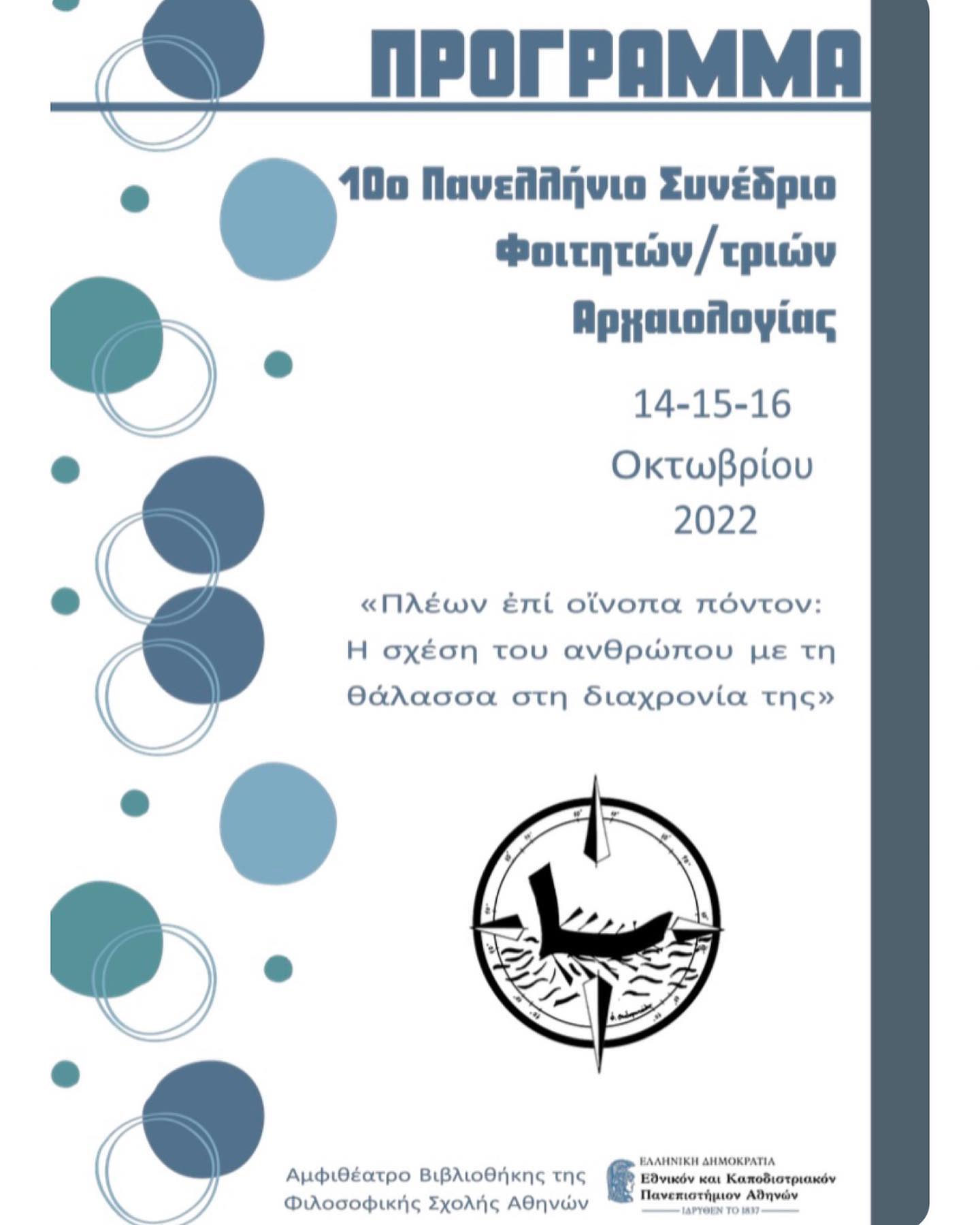 Το 10ο Πανελλήνιο Συνέδριο Φοιτητών/τριών Αρχαιολογίας θα διεξαχθεί στις 14-15-16 Οκτωβρίου στο Αμφιθέατρο της Βιβλιοθήκης της Φιλοσοφικής Εθνικού και Καποδιστριακου Πανεπιστημίου Αθηνών.