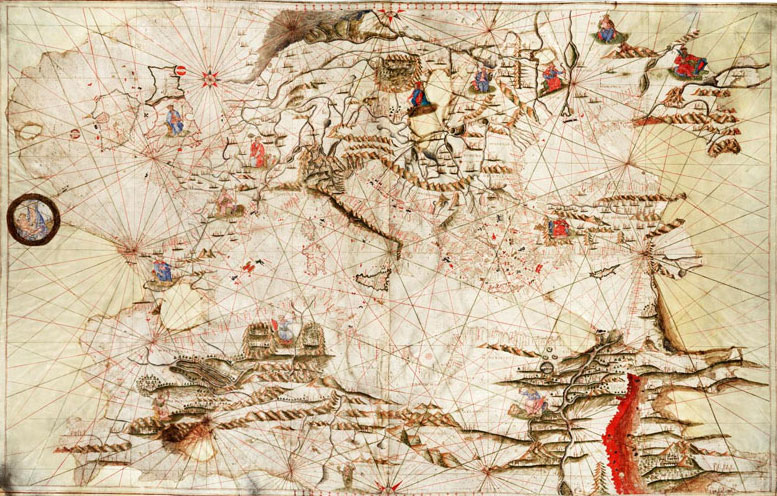 H έκθεση επικεντρώνεται γύρω από την ιστορία και τις απαρχές των ευρωπαϊκών χειρόγραφων πορτολάνων χαρτών, αναδεικνύει τις πόλεις και τα λιμάνια που άνθισαν, περιγράφει τα διάφορα είδη καραβιών που διέσχιζαν τη θάλασσα της Μεσογείου, ενώ ιδιαίτερη αναφορά γίνεται στις μεγάλες ναυμαχίες και στην πειρατεία, τόσο τη μουσουλμανική όσο και τη χριστιανική. Tο τελευταίο μέρος της έκθεσης καλύπτει το θέμα των διομολογήσεων που προσέφερε η Oθωμανική Aυτοκρατορία στα Eυρωπαϊκά κράτη, τις απαρχές καθώς και την ανάπτυξη της Mεσογειακής Nαυτιλιακής Nομοθεσίας.