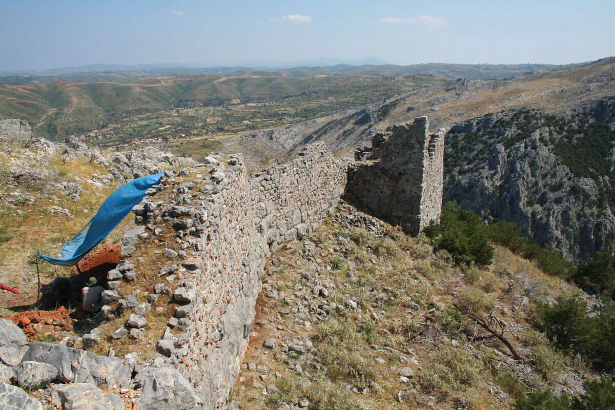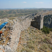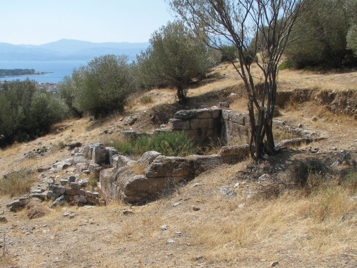 Πίσω από το Θέατρο δεσπόζει, ακόμη και σήμερα, το τείχος της αρχαίας πόλης που περιέκλειε και την ακρόπολη. Στο οροπέδιο της κορυφής της τελευταίας αποκαλύφθηκε το αρχαιότερο προϊστορικό χωριό (Ύστερης/Τελικής Νεολιθικής και Μέσης Εποχής του Χαλκού), αλλά και τα ερείπια ενός ιερού της Αθηνάς. Στις παρυφές βρίσκονται μια ελληνιστική δεξαμενή και δύο Θεσμοφόρεια. Τα τείχη συνέδεαν την ακρόπολη με την κάτω πόλη, οριοθετώντας έτσι μια έκταση 70 εκταρίων.