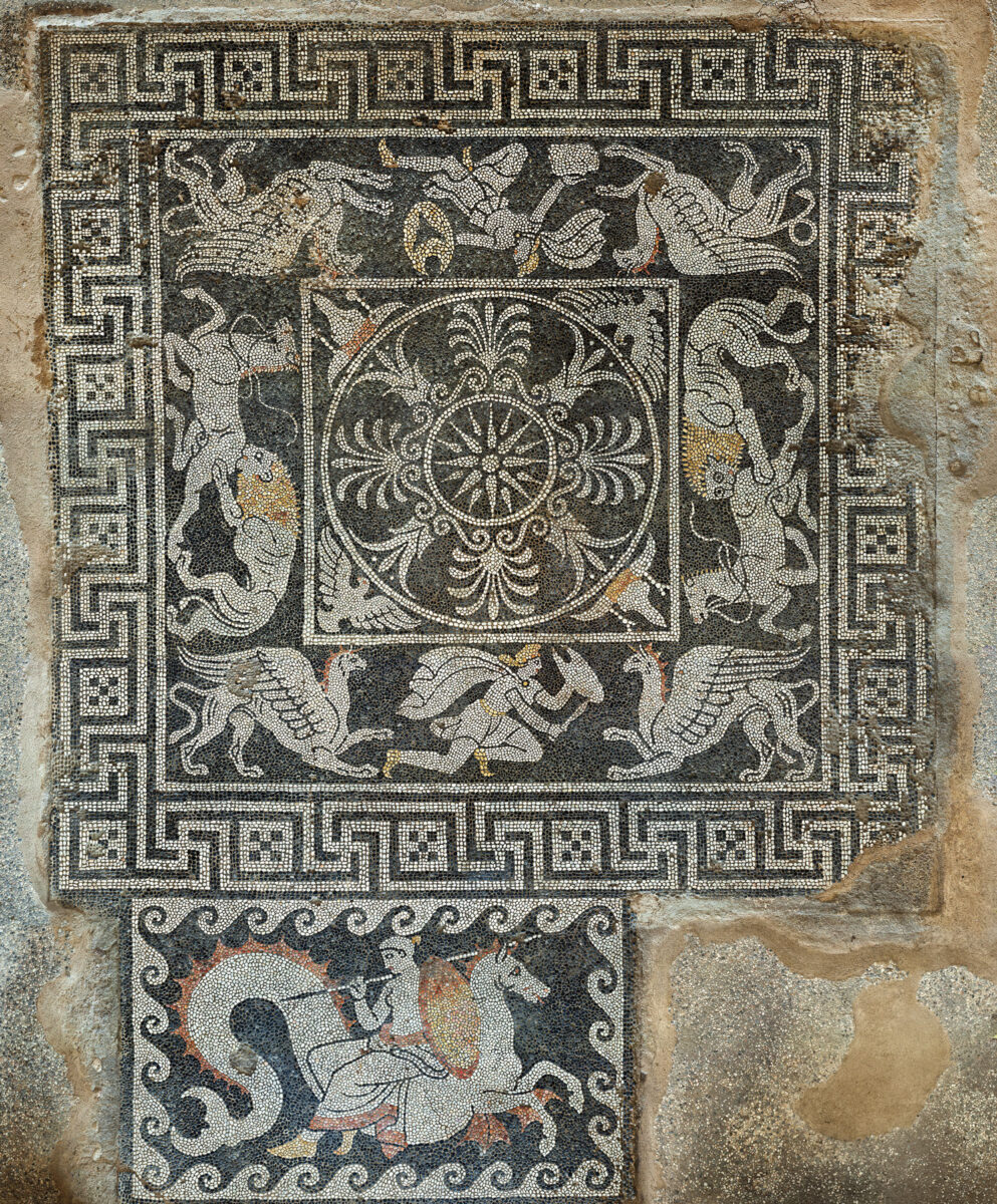 Αυτή η κεντρική συνοικία περιελάμβανε κατά την Ελληνιστική περίοδο πολλές πολυτελείς κατοικίες, όπως η Οικία με τα Ψηφιδωτά, της οποίας τα εντυπωσιακά δάπεδα προστατεύονται από στέγαστρο. Το κεντρικό ψηφιδωτό απεικονίζει επεισόδια της μάχης μεταξύ Αριμασπών και Γρυπών, ενώ στο ψηφιδωτό της εισόδου του ίδιου ανδρώνα απεικονίζεται η Θέτιδα που φέρει τα όπλα για τον Αχιλλέα ιππεύοντας έναν ιππόκαμπο.