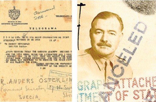 Στα έγγραφα, μεταξύ άλλων, υπάρχει το τηλεγράφημα της Σουηδικής Ακαδημίας το οποίο ανακοίνωνε στον συγγραφέα ότι κέρδισε το Νόμπελ το 1954, καθώς και το διαβατήριό του.