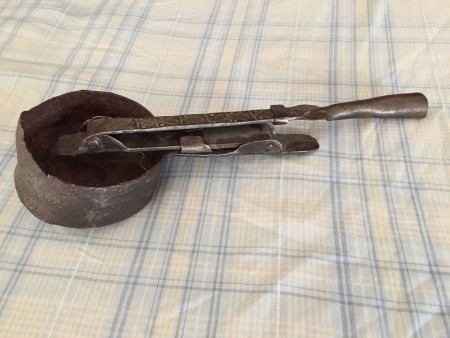 Σε μία από τις επισκέψεις μου στην Αργολίδα βρήκα ένα σιδερένιο σκεύος που χρησιμοποιούσαν οι Άραβες νομάδες για να καβουρδίζουν τους κόκκους του καφέ.