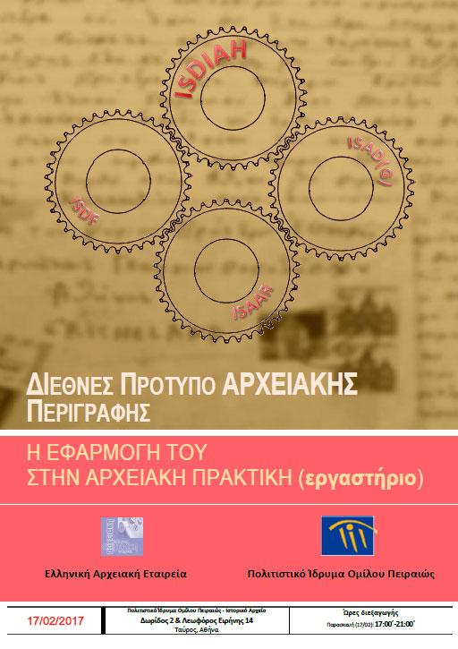 Το εργαστήριο διοργανώνουν το Πολιτιστικό Ίδρυμα Ομίλου Πειραιώς (ΠΙΟΠ) και η Ελληνική Αρχειακή Εταιρεία.