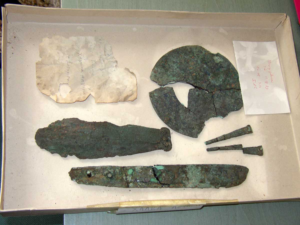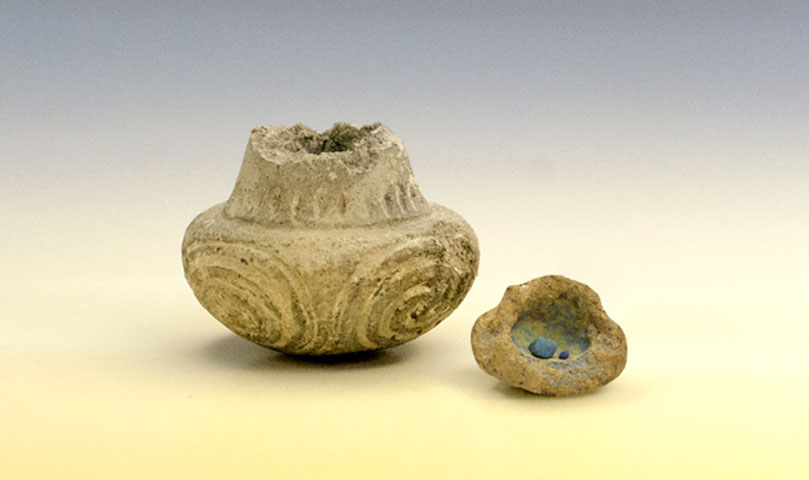 Ένα σύνολο αντικειμένων από τα πολλά που συναντώνται στις Κυκλάδες της 3ης χιλιετίας, τα οποία χρησίμευαν για την προετοιμασία, τη μεταφορά και τη χρήση των φυσικών χρωστικών υλών, κυρίως του κόκκινου και του μπλε.