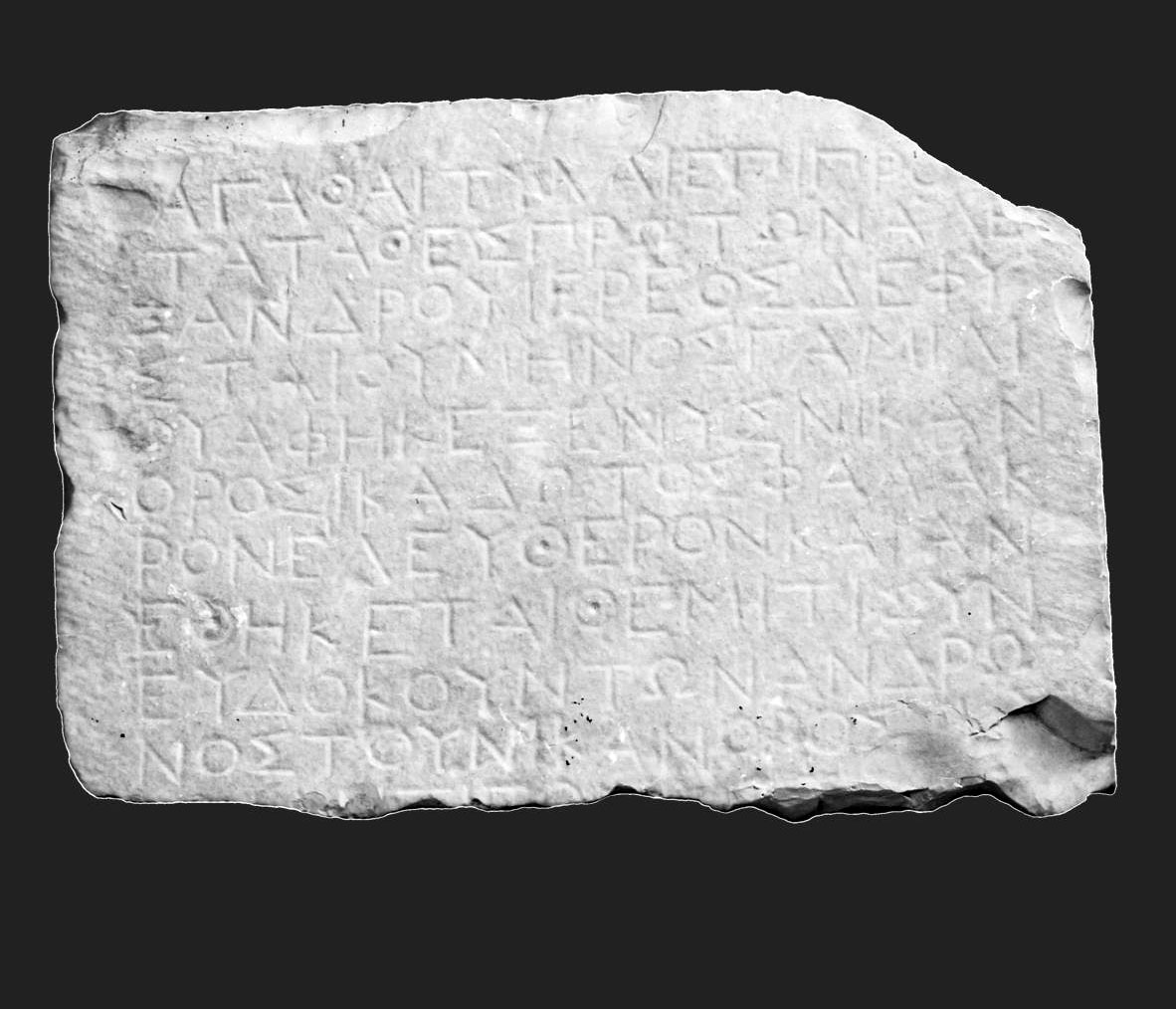 Το Αρχαιολογικό Μουσείο Ηγουμενίτσας παρουσιάζει μια λίθινη στήλη με απελευθερωτική επιγραφή που προσφέρει σημαντικές πληροφορίες για την πολιτική οργάνωση, τις κοινωνικές δομές και τη θρησκεία στη Θεσπρωτία του 4ου αι. π.Χ.