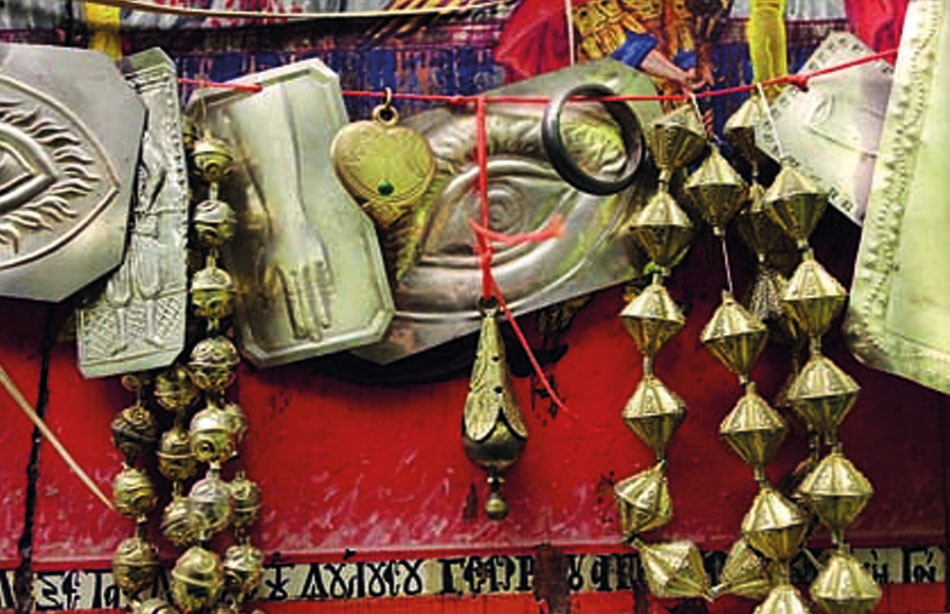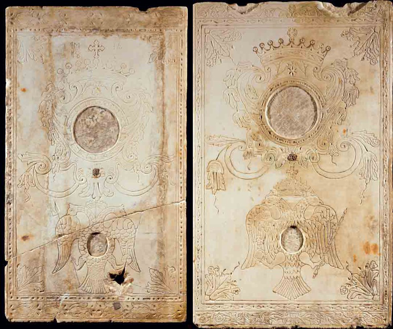 Ο δικέφαλος αετός, μεταξύ άλλων και επιτύμβιο θέμα, γνωστό από ταφόπλακες στο κοιμητήριο του χωριού, υποδηλώνει ως πιθανή πρώτη χρήση την ταφική σε δάπεδο εκκλησίας.