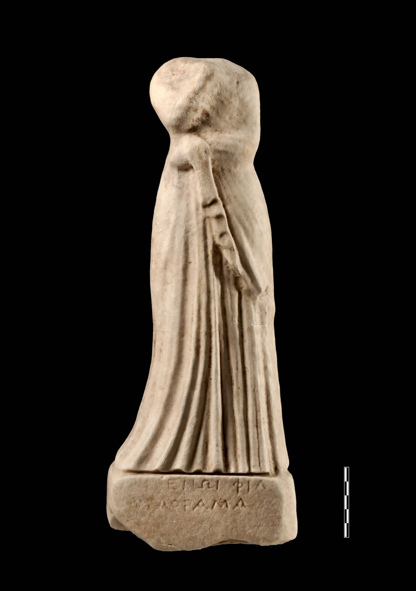 Πρόκειται για σώμα γυναικείου αγαλματιδίου, από λευκό ασβεστόλιθο, με ενεπίγραφη βάση, το οποίο προέρχεται από τον επονομαζόμενο «Μικρό Ναό» των Γιτάνων και χρονολογείται στους ελληνιστικούς χρόνους.