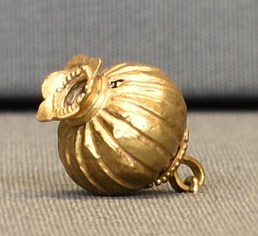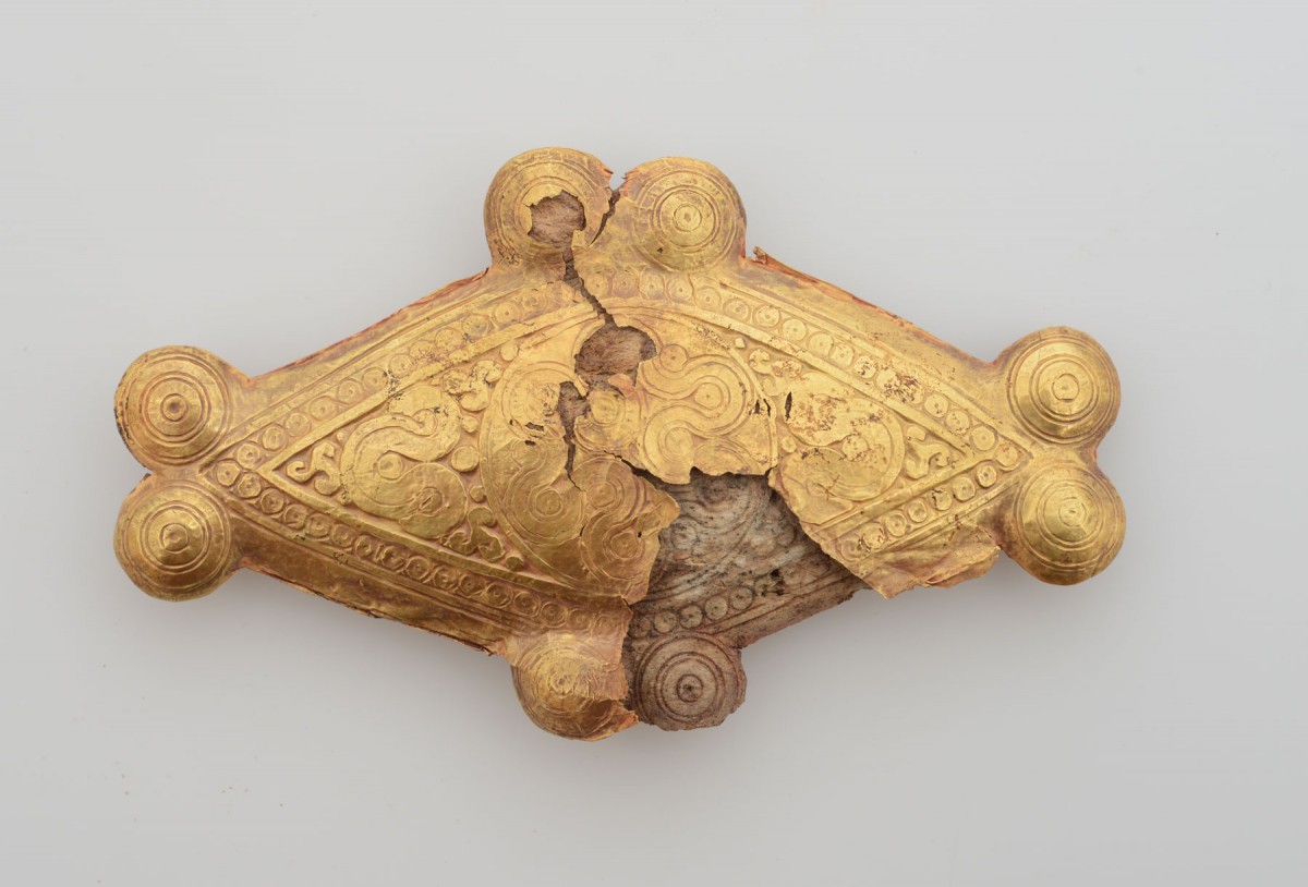 Η δρ Ελένη Κωνσταντινίδη-Συβρίδη, αρχαιολόγος στο Εθνικό Αρχαιολογικό Μουσείο, παρουσιάζει ένα από τα ωραιότερα οστέινα εξαρτήματα με χρυσή επένδυση του Ταφικού Κύκλου Α των Μυκηνών.