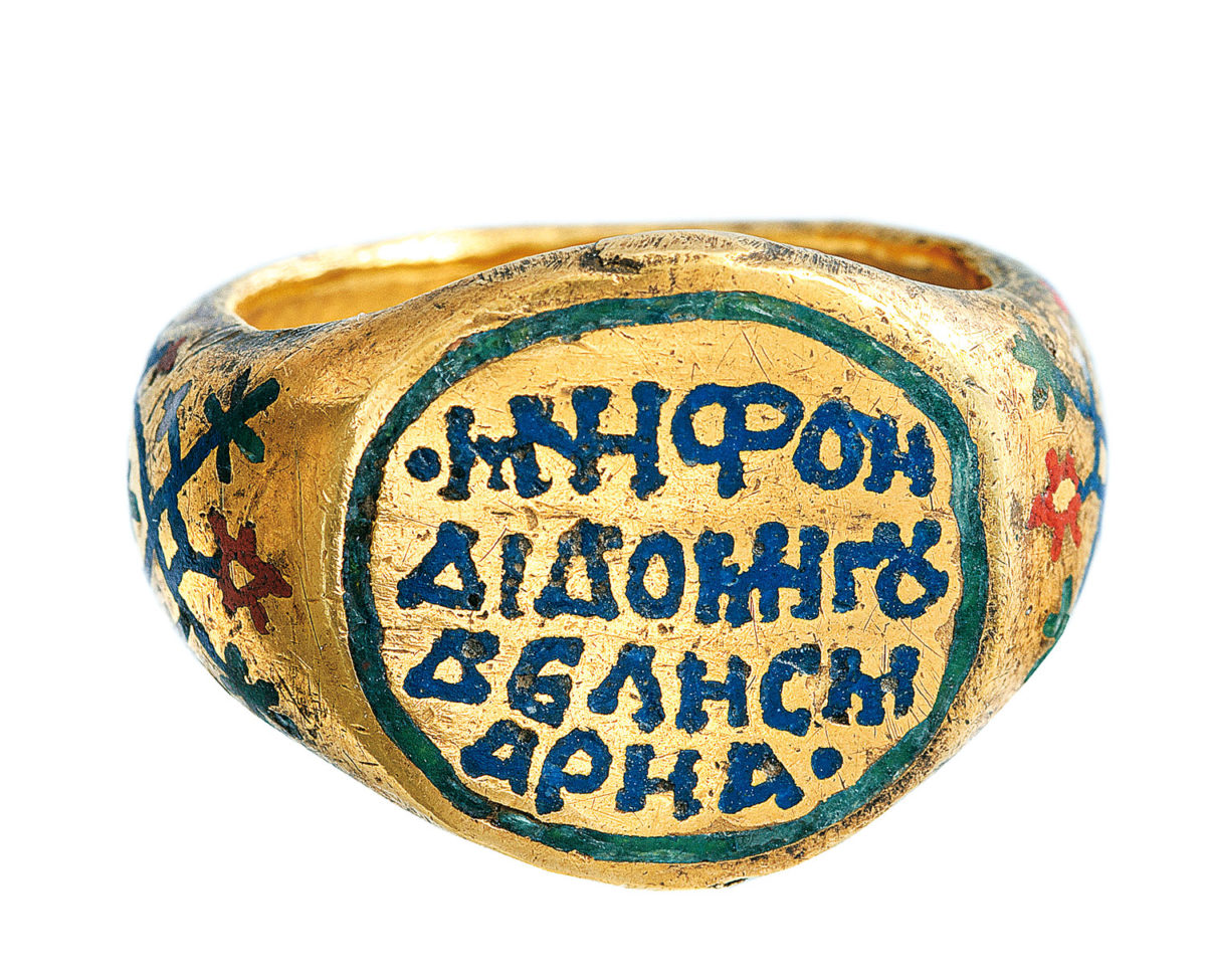 Χαρακτηριστικό παράδειγμα του σπάνιου είδους των βυζαντινών ενεπίγραφων δαχτυλιδιών αρραβώνα, το παράδειγμα της Συλλογής Σταθάτου πρέπει να ανήκε σε εύπορο κάτοχο της ανώτερης τάξης.