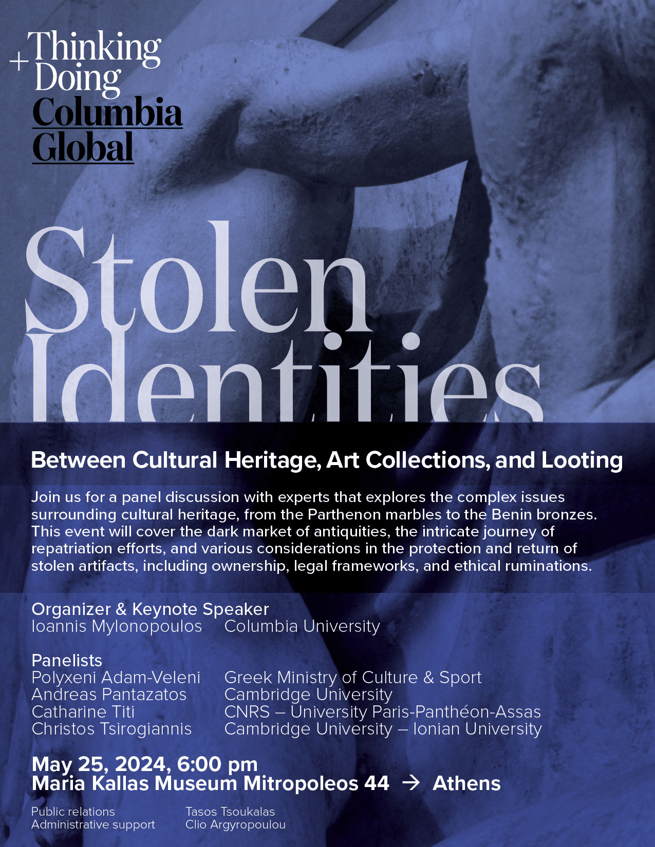 Οι ιδιωτικές συλλογές και ο τρόπος διαχείρισής τους ως τμήμα της τοπικής και παγκόσμιας πολιτιστικής κληρονομιάς βρέθηκαν στο κέντρο του ενδιαφέροντος της εκδήλωσης διαλόγου (panel discussion) με τίτλο “Stolen Identities: Between Cultural Heritage, Art Collections and Looting”, που πραγματοποιήθηκε στο το περασμένο Σάββατο, 25 Μαΐου στο Μουσείο Μαρία Κάλλας, υπό την αιγίδα του Columbia Global Center της Αθήνας.