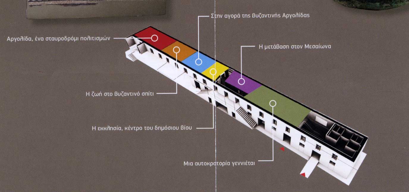 [Εικ. 1. Το Βυζαντινό Μουσείο Άργους λειτουργεί στο κτίριο των Στρατώνων Καποδίστρια. Εικ. 2. Σχεδιαστική αναπαράσταση της έκθεσης. Εικ. 3. Τμήμα του αύλειου χώρου των Στρατώνων Καποδίστρια.]