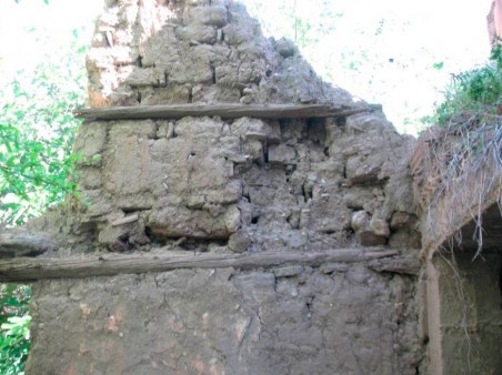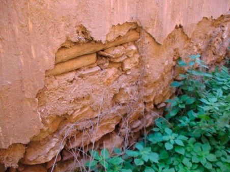 Εικ. 10. Ομοίως ως και στην εικόνα 9. Διακρίνεται και το άχυρο ως συνδετική ύλη ωμοπλινθοδομής και επιχρίσματος.