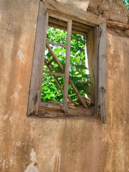 Εικ. 11. Παράθυρο από κοινή ξυλεία σχεδόν πλήρως αποσαθρωμένο, ιδίως στο κατώφλι όπου συσσωρεύονται τα ύδατα.