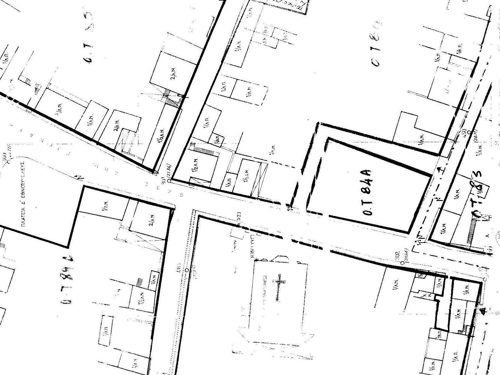Εικ. 5. Απόσπασμα του ρυμοτομικού Σχεδίου του Άργους, 1969. Είναι σαφής η απεικόνιση οικίας και εξώστου με διαφορετικό συμβολισμό, ως είθισται.