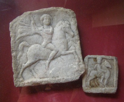 • Ένα μαρμάρινο ταφικό ανάγλυφο στον ναό της Παναγίας Σκριπούς