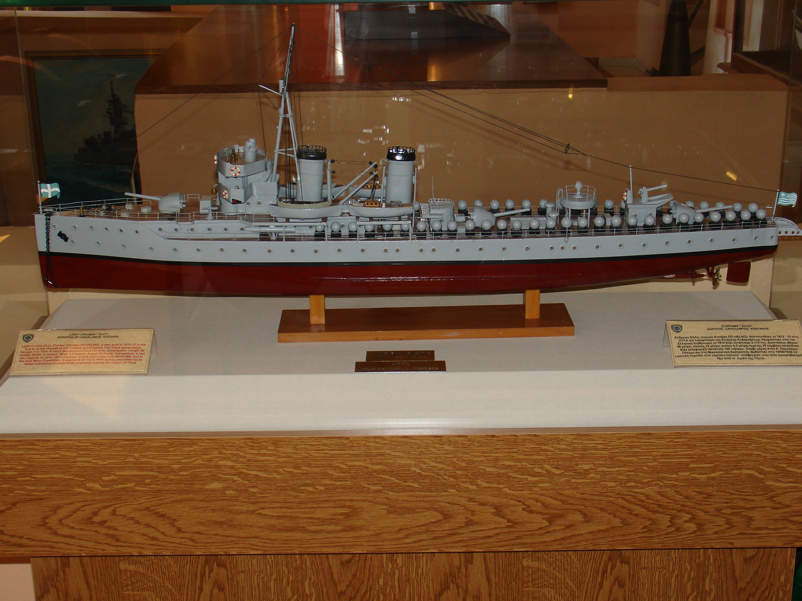 Βυθίστηκε στις 15 Αυγούστου 1940 σε ειρηνική περίοδο από το Ιταλικό Υποβρύχιο «Delfino» και ενώ ήταν αγκυροβολημένο έξω από τον λιμένα της Τήνου.