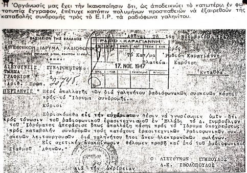 Η πληρωμή της συνδρομής γινόταν στο ταχυδρομείο και το κατάστημα που πουλούσε τα ραδιόφωνα ήταν υποχρεωμένο να στέλνει λίστα στο Εθνικό Ίδρυμα Ραδιοφωνίας με τα πλήρη στοιχεία των αγοραστών.
