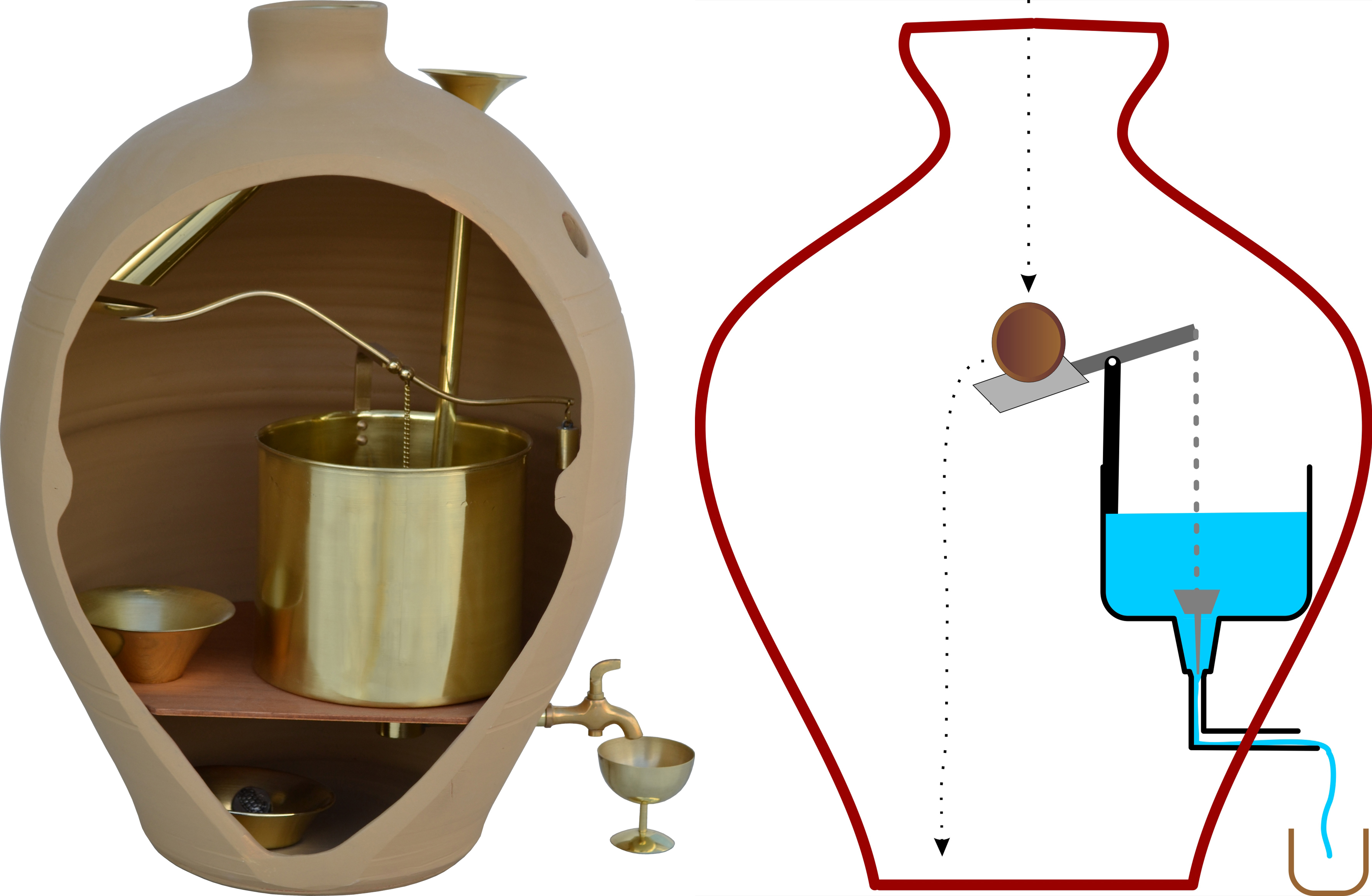 Σύμφωνα με τον Ήρωνα τον Αλεξανδρέα (Πνευματικά) τοποθετούνταν έξω από ναούς και επέτρεπε τη λήψη αγιασμού από τους πιστούς με τη ρίψη ενός πεντάδραχμου νομίσματος σε αγγείο.