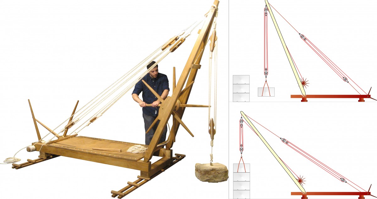 Η δίκωλος ανυψωτική μηχανή με βαρούλκα ανύψωσης ιστού και φορτίου, ο γερανός που έκτισε τον Παρθενώνα.