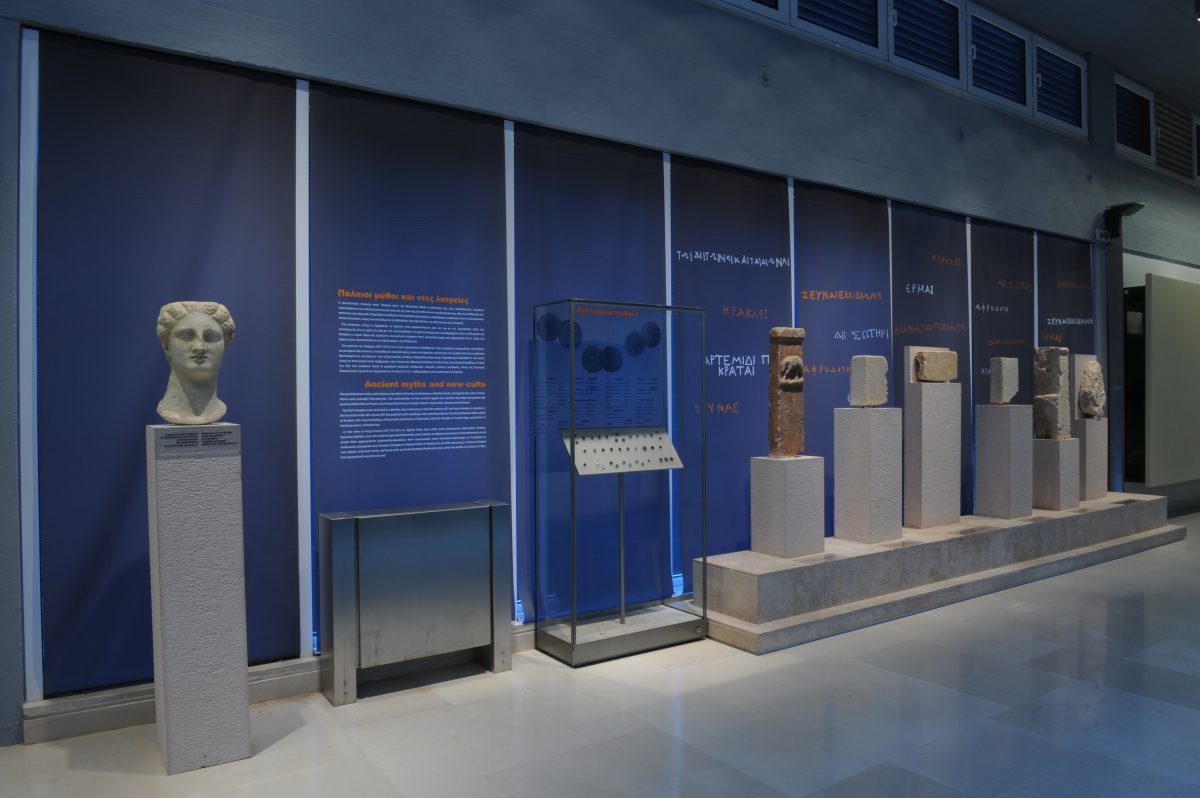 Στην πρώτη παρουσιάζονται οι κύριες λατρευόμενες θεότητες στην αρχαία Ήπειρο, μέσα από τις απεικονίσεις σε νομίσματα, τα αποτμήματα λατρευτικών αγαλμάτων και τις αναθηματικές ενεπίγραφες στήλες.