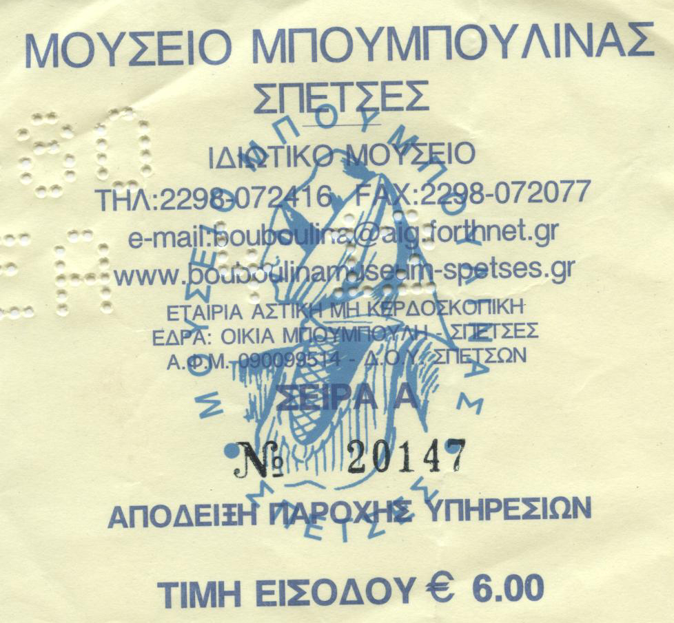 Εισιτήριο Μουσείου Μπουμπουλίνας Σπέτσες