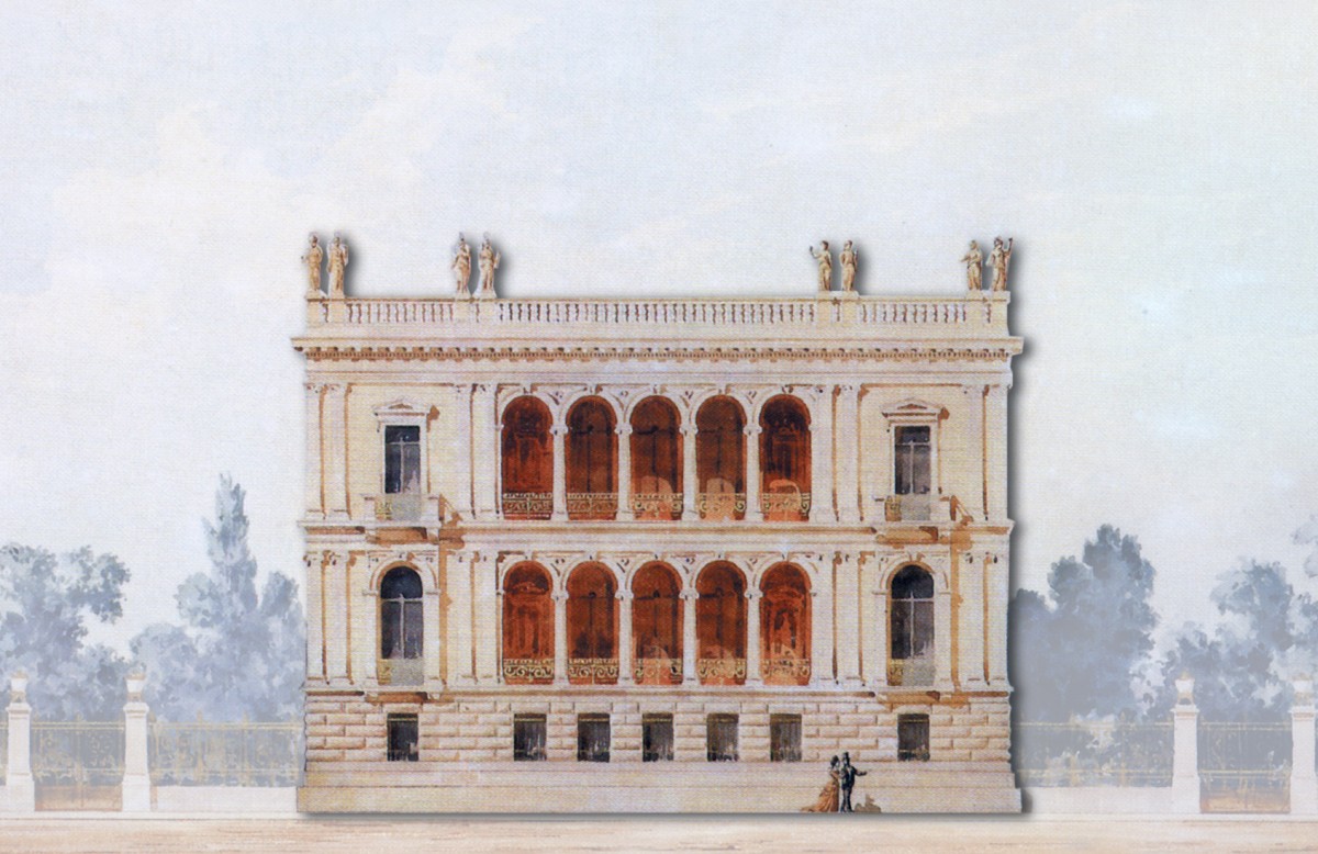 Ιλίου Μέλαθρον, υδατογραφία της πρόσοψης.