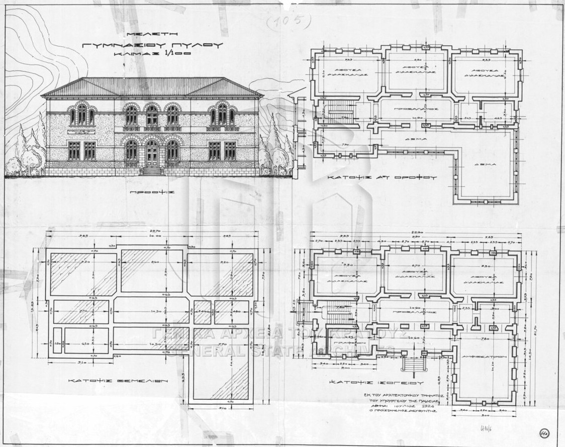 * Εικόνα: Το σπάνιο αρχιτεκτονικό σχέδιο του ιστορικού γυμνασίου, Ιούλιος 1924