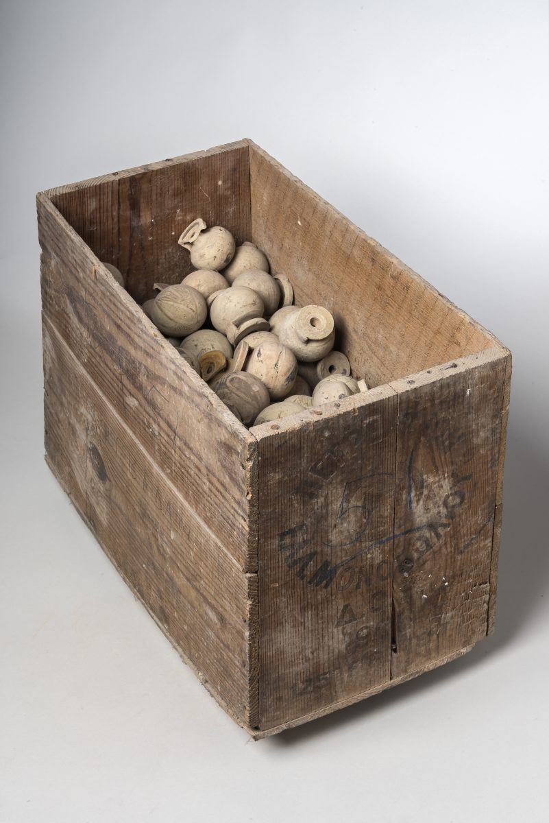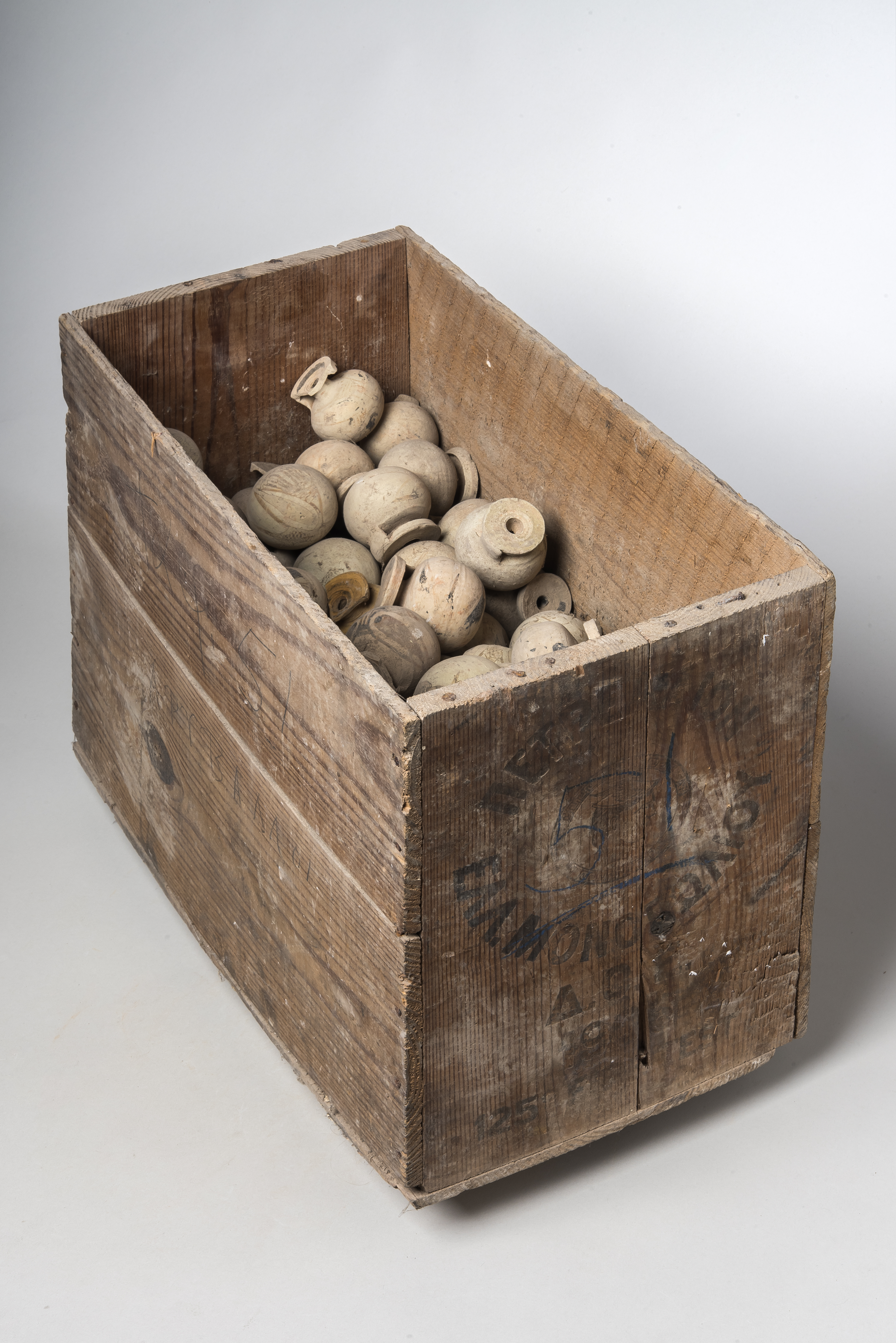 Ξύλινα κιβώτια βιομηχανικών προϊόντων για την τοποθέτηση ευρημάτων ανασκαφών, αρχές 20ού αιώνα.