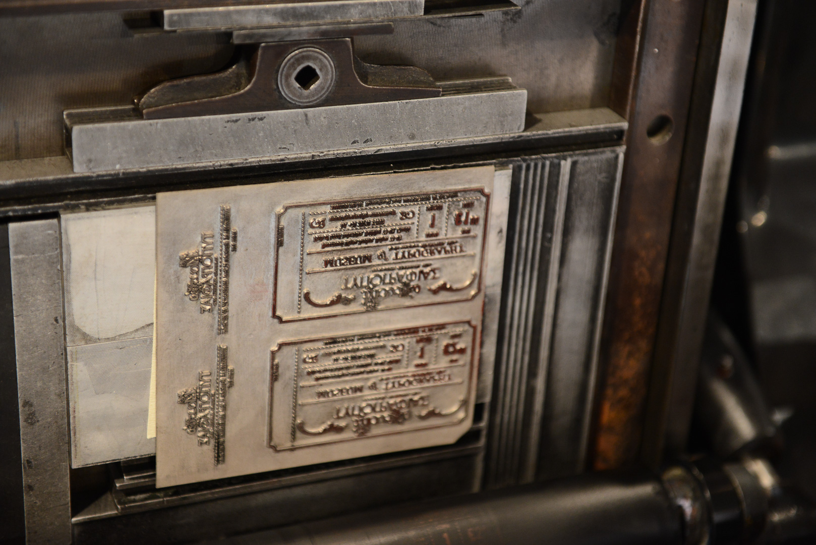 Κλισέ τα οποία χρησιμοποιούνται για να τυπωθούν τα εισιτήρια του Μουσείου Τυπογραφίας.