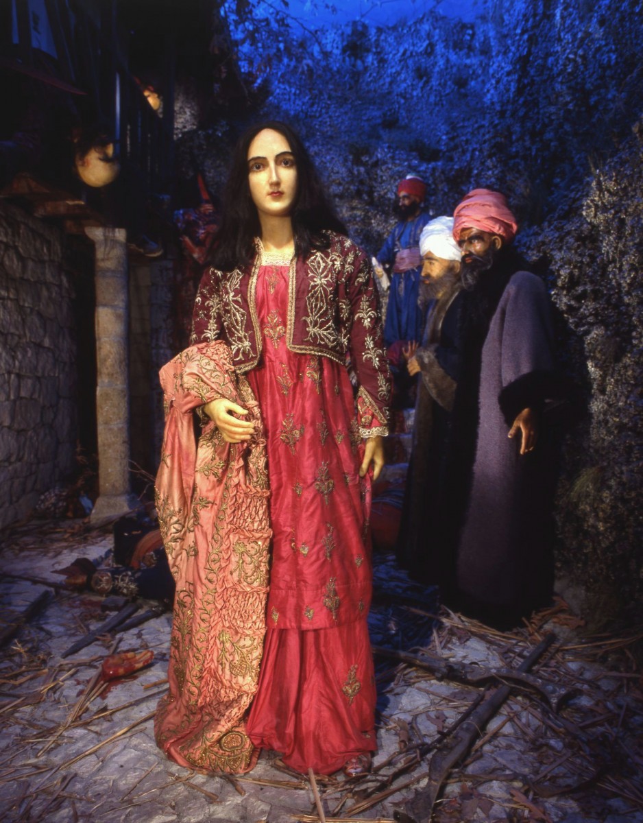 Κυρίαρχη μορφή στη σύνθεση αυτή, που είναι από τη σφαγή του Αλή–πασά, είναι η ήρεμη και γλυκιά μορφή της Κυρά–Βασιλικής την οποία επίτηδες ο δημιουργός Παύλος Βρέλλης τοποθέτησε πολύ κοντά στον επισκέπτη, γιατί είναι το μόνο πλάσμα που έσωσε και βοήθησε κόσμο, το μόνο πλάσμα που νοιάστηκε για άλλους, πιο πολύ από τον εαυτό της. Γι’ αυτό και την έχει αποδώσει ήρεμη ακόμη και εκείνη τη στιγμή που πίσω της επικρατούν σκηνές κόλασης. Μοναδικό κομμάτι η φορεσιά της Κυρά-Βασιλικής.
