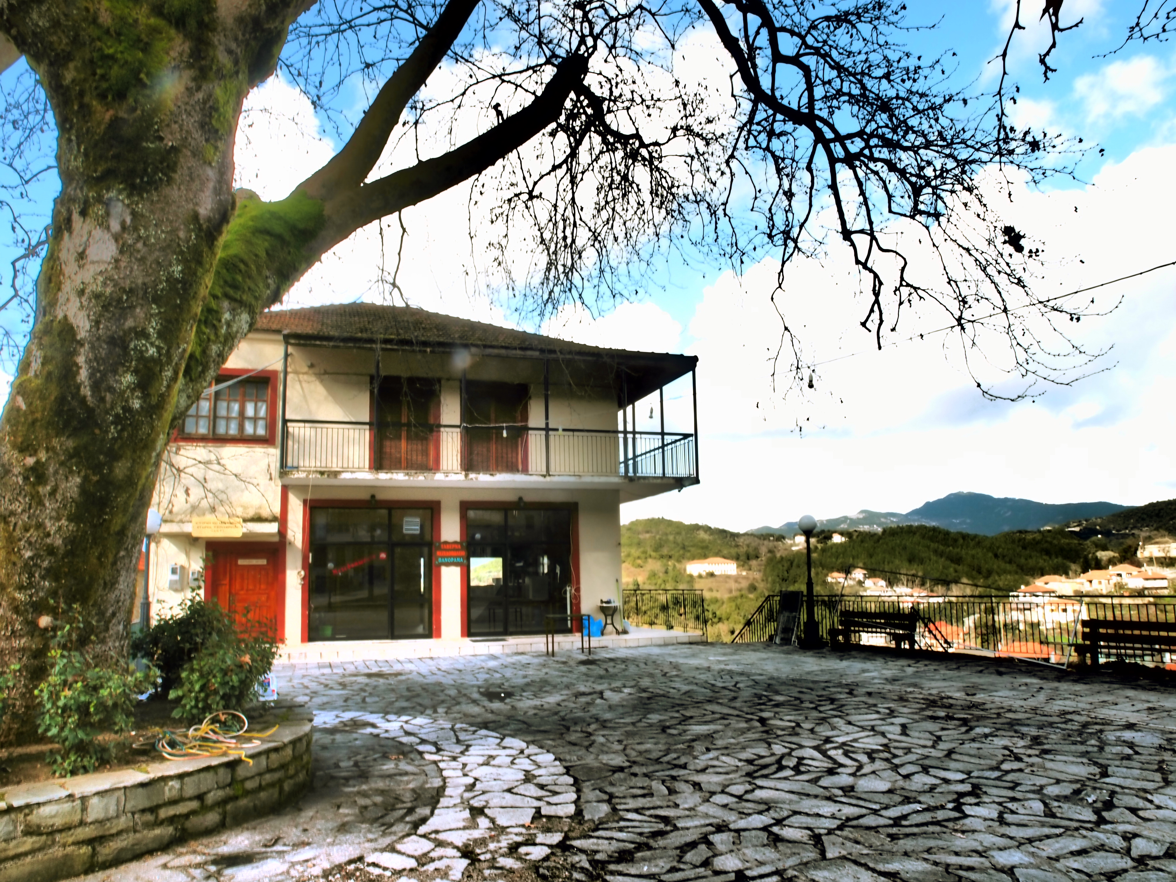 Άποψη της πρόσοψης του κτηρίου, όπου στεγάζεται το Λαογραφικό Μουσείο Τζουμέρκων.