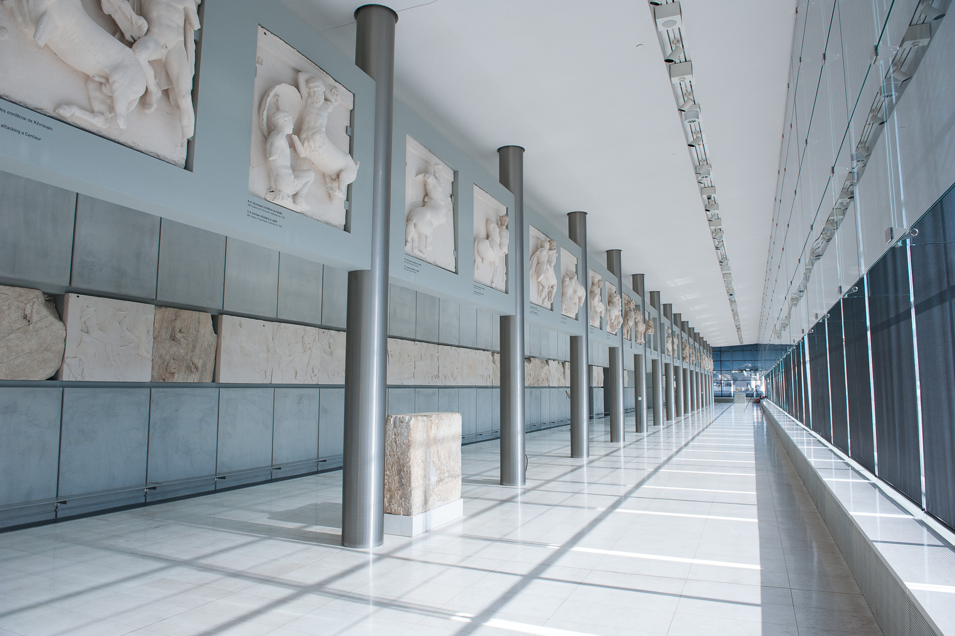 Μια από τις μετόπες βρίσκεται ακόμα στην Αθήνα, ενώ μια άλλη φιλοξενείται στο Λούβρο και δεκαπέντε άλλες στο Βρετανικό Μουσείο.