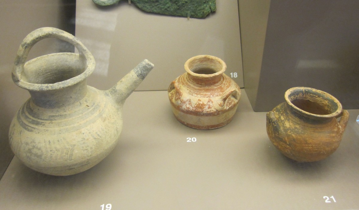 Θήλαστρο, τρίωτο κυλινδρικό αλάβαστρο και αμφορίσκος. Αρχαιολογικό Μουσείο Βραυρώνας.