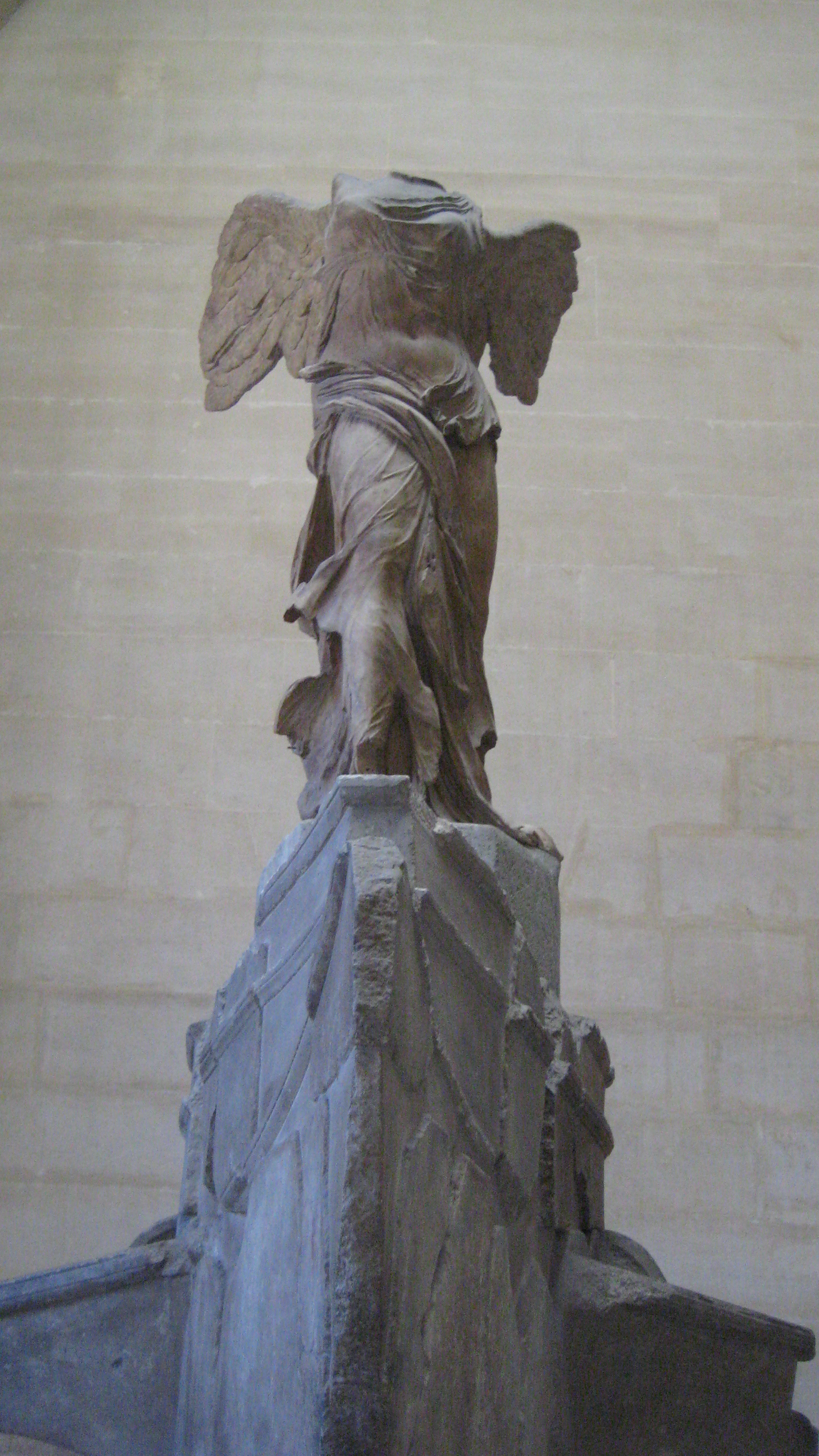 Η δεξιά παλάμη της ανασυστάθηκε αποκαλύπτοντας ότι δεν κρατούσε σάλπιγγα όπως πολλοί πίστευαν μέχρι τότε και εκτίθεται επίσης στο Λούβρο, σε χωριστή βιτρίνα κοντά στα άγαλμα