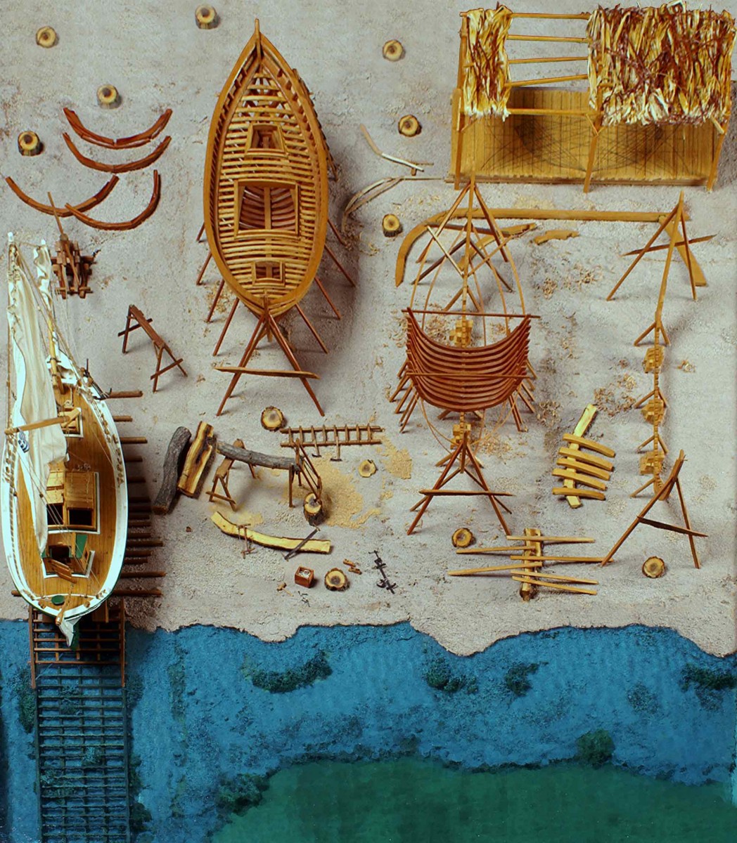 Διόραμα παραδοσιακού ναυπηγείου (ταρσανάς) σε κλίμακα: 1/30. Κατασκευή: Αριστοτέλης & Γεώργιος Ράλλης. Έρευνα και σχέδια: Κ. Δαμιανίδης.