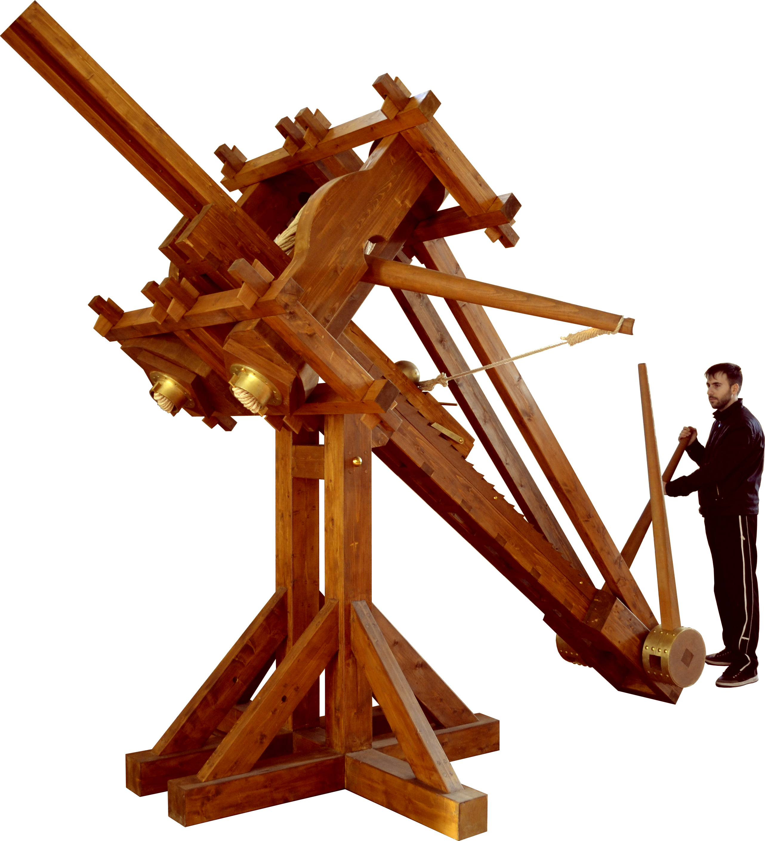 Μέσα στη θήκη γλιστρούσε μια κεντρική ράβδος («διώστρα») που είχε τη διατομή της χελιδονοουράς και στο πάνω μέρος της μία αύλακα για την υποδοχή του λίθου. Η «διώστρα» όπλιζε με τη βοήθεια ενός ισχυρού χειροκίνητου βαρούλκου και ασφάλιζε στις εγκοπές των πριονωτών οδοντώσεων. Η ταχεία απελευθέρωσή της επιτυγχανόταν με τη βοήθεια μιας ειδικής αρπάγης.
