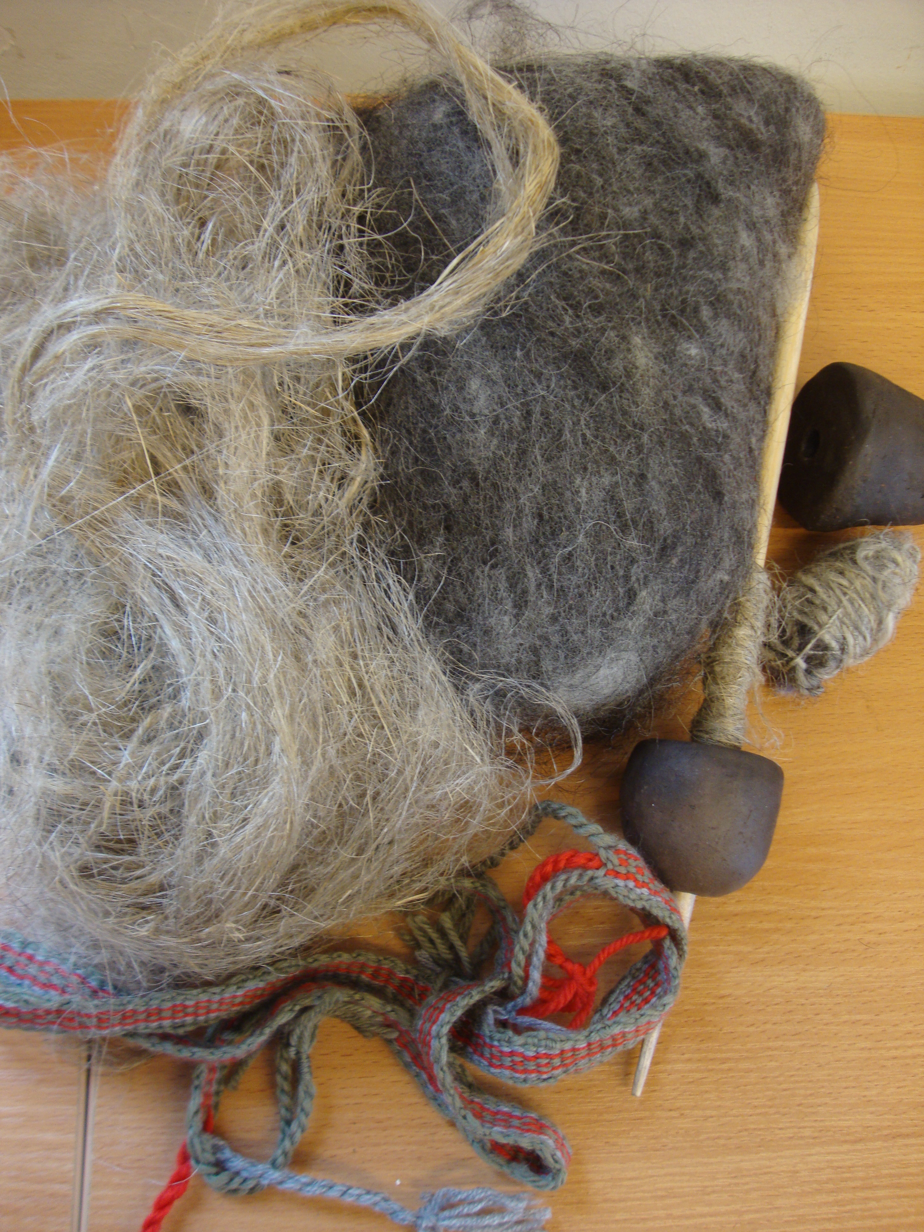 Πίλημα, ίνες και νήμα λιναριού, ταινία στημονίσιας δομής και αντίγραφο σφοντυλιού από την Κρήτη, πρώϊμη περίοδος του Χαλκού.