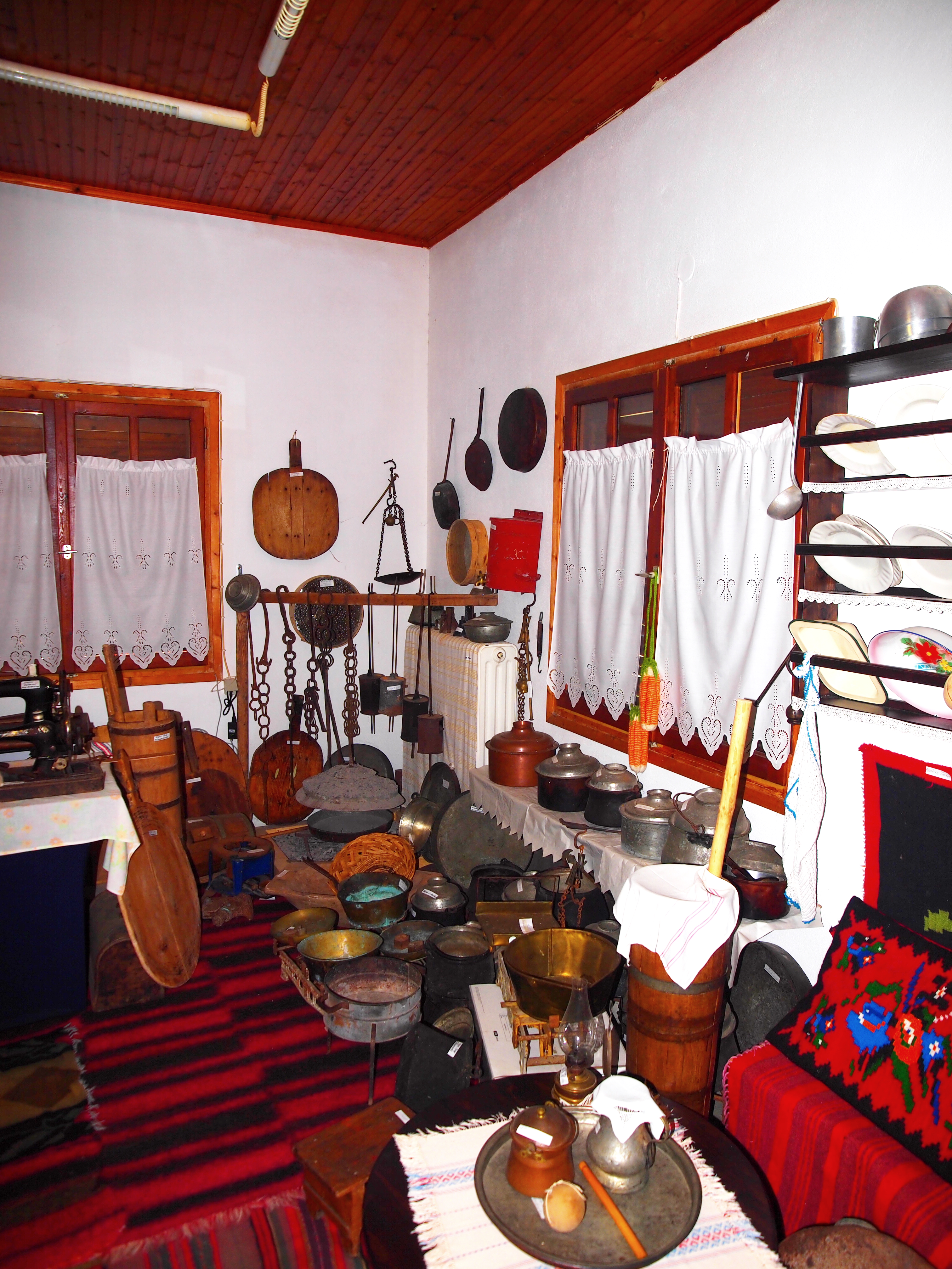 Αναπαράσταση του χώρου του τζακιού και της κουζίνας, όπως έχει διαμορφωθεί στο εσωτερικό του μουσείου.