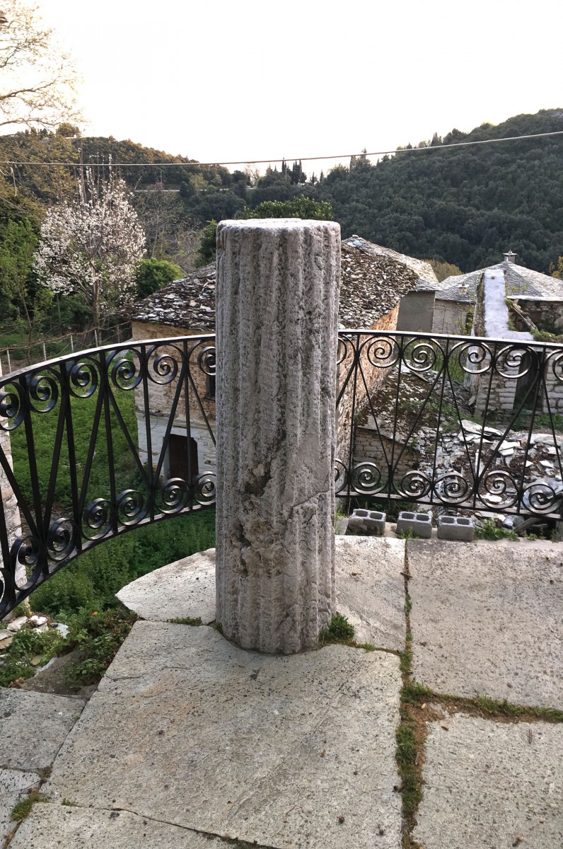 Στη γωνία της πλατείας στέκεται αυτή η μικρή ραβδωτή κολόνα. Ποιος ξέρει τι μνήμες κουβαλάει, από πότε βρίσκεται στο σημείο αυτό από όπου η θέα ανοίγεται στη θάλασσα και τι σηματοδοτεί…