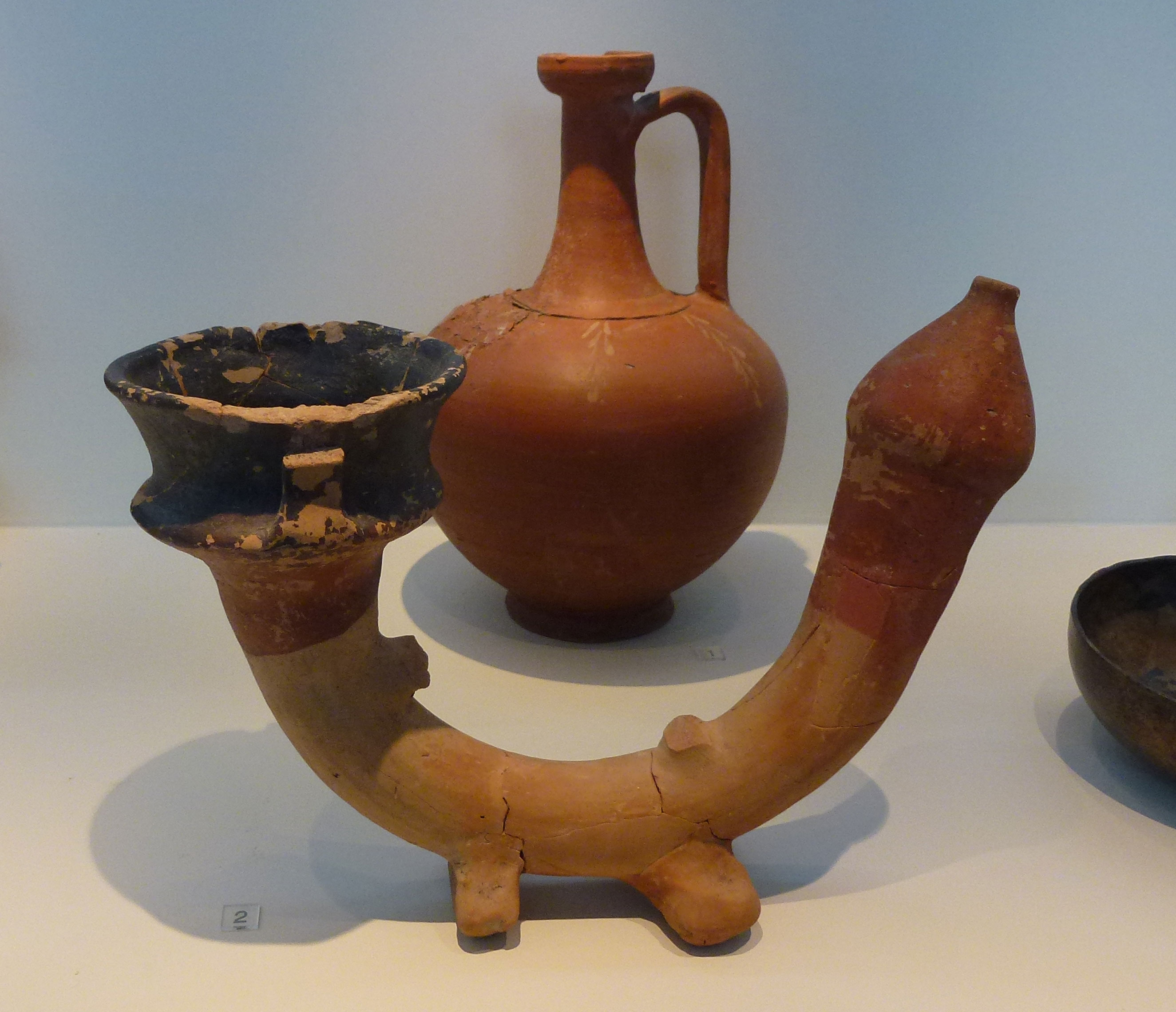 Φαλλόμορφο ρυτό από την Πέλλα. Τέλος 4ου-αρχές 1ου αι. π.Χ., Αρχαιολογικό Μουσείο Πέλλας.