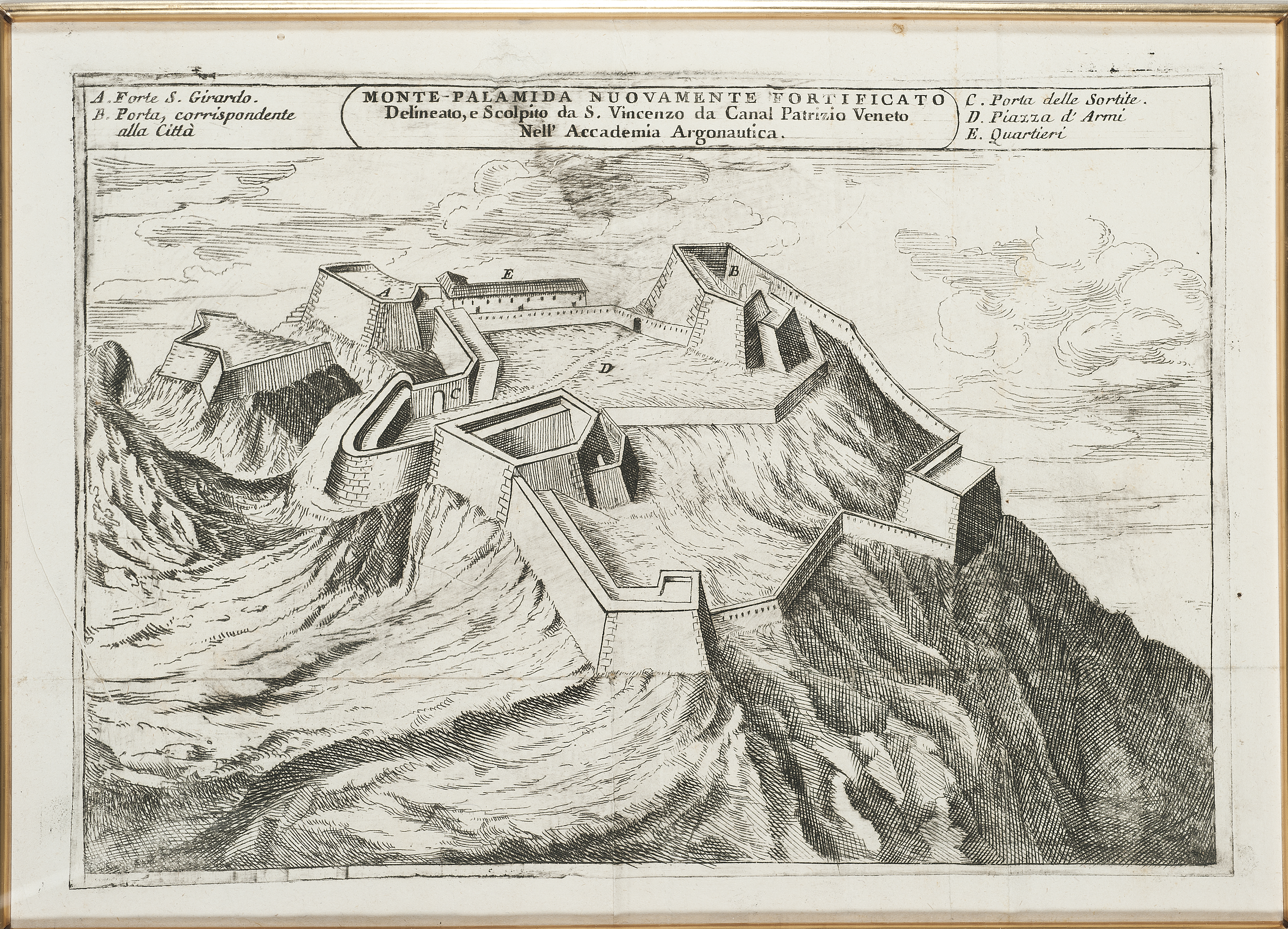 Στις αρχές του 18ου αιώνα το φρούριο του Παλαμηδίου με τους προμαχώνες, τις πύλες και τους στρατώνες εμφανίζεται στις χαλκογραφίες του Vincento Maria Coronelli.