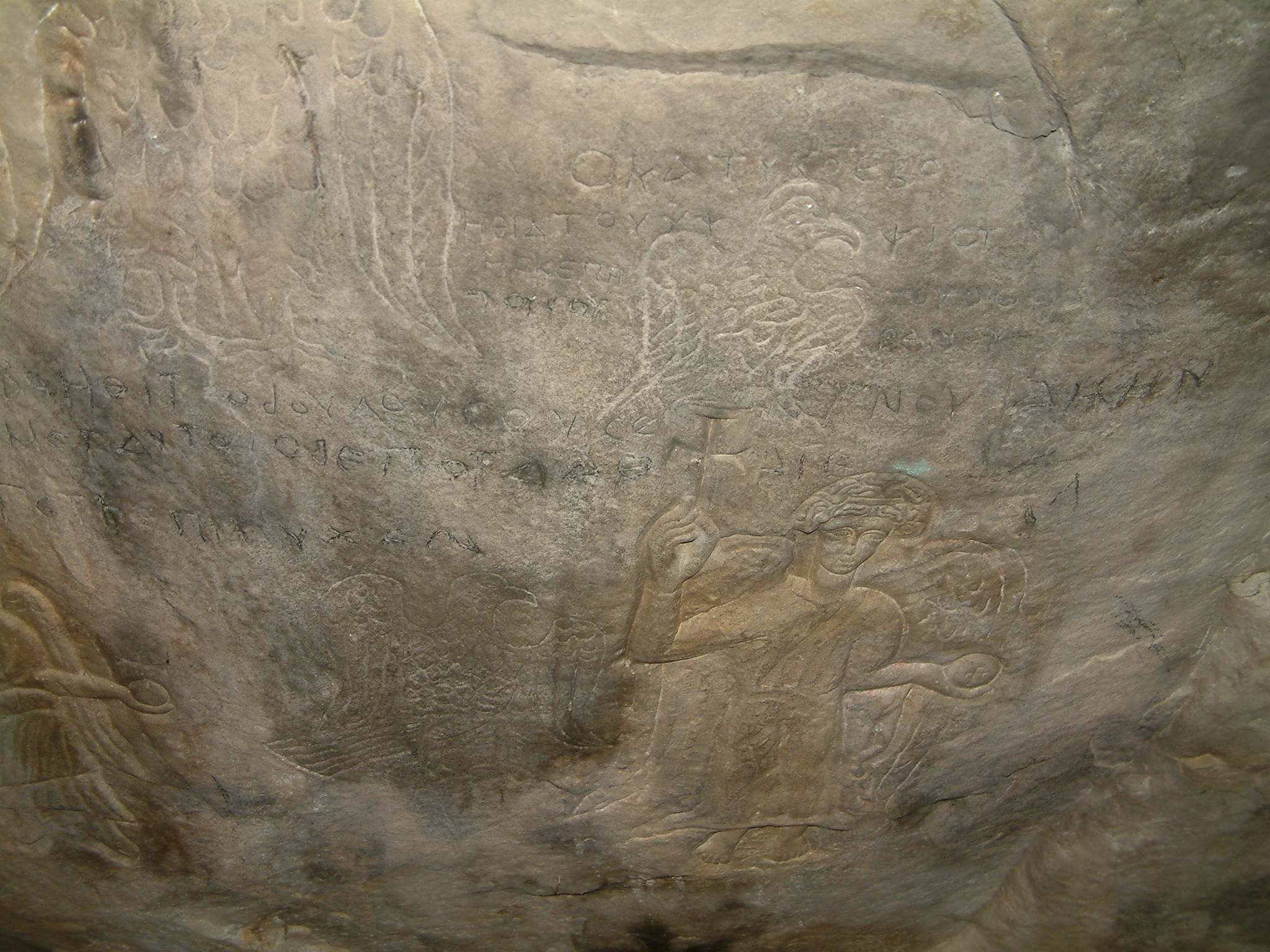 Αναγεγλυμμένοι άγγελοι, αετοί και σταυροί μέσα στην εκκλησία του Λατομείου της Σπηλιάς.