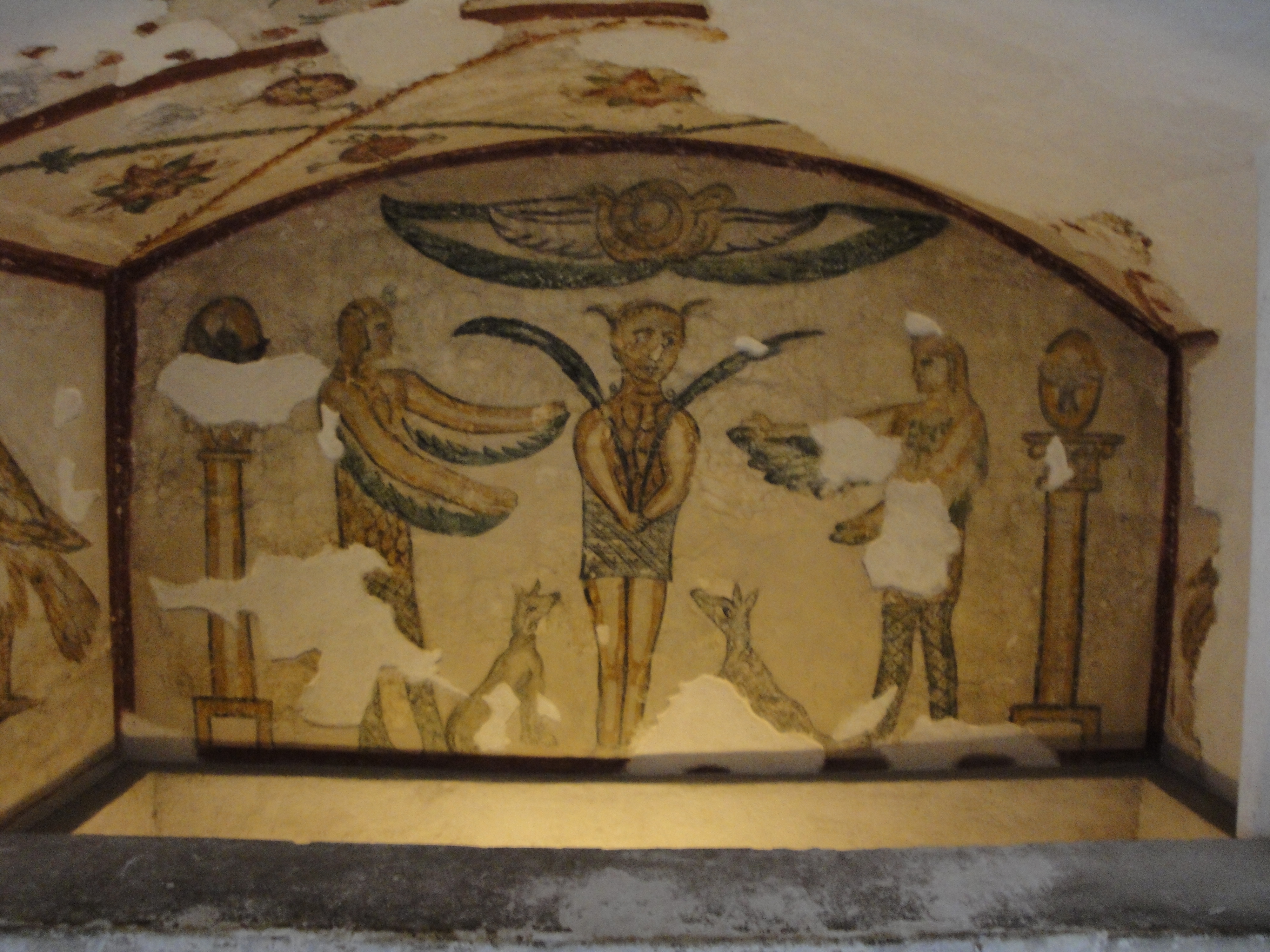Αινιγματική τοιχογραφία, εμπνευσμένη θεματικά από αιγυπτιακές δοξασίες, σε ελληνορωμαϊκό τάφο στην Αλεξάνδρεια (Αίγυπτος).