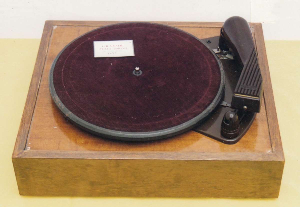 Στη φωτογραφία βλέπουμε ένα γραμμόφωνο Gravor 1937, το συγκεκριμένο μοντέλο δουλεύει με ρεύμα και όπως βλέπουμε δεν έχει χωνί γιατί ο ήχος μεταδίδεται μέσω ραδιοφώνου.