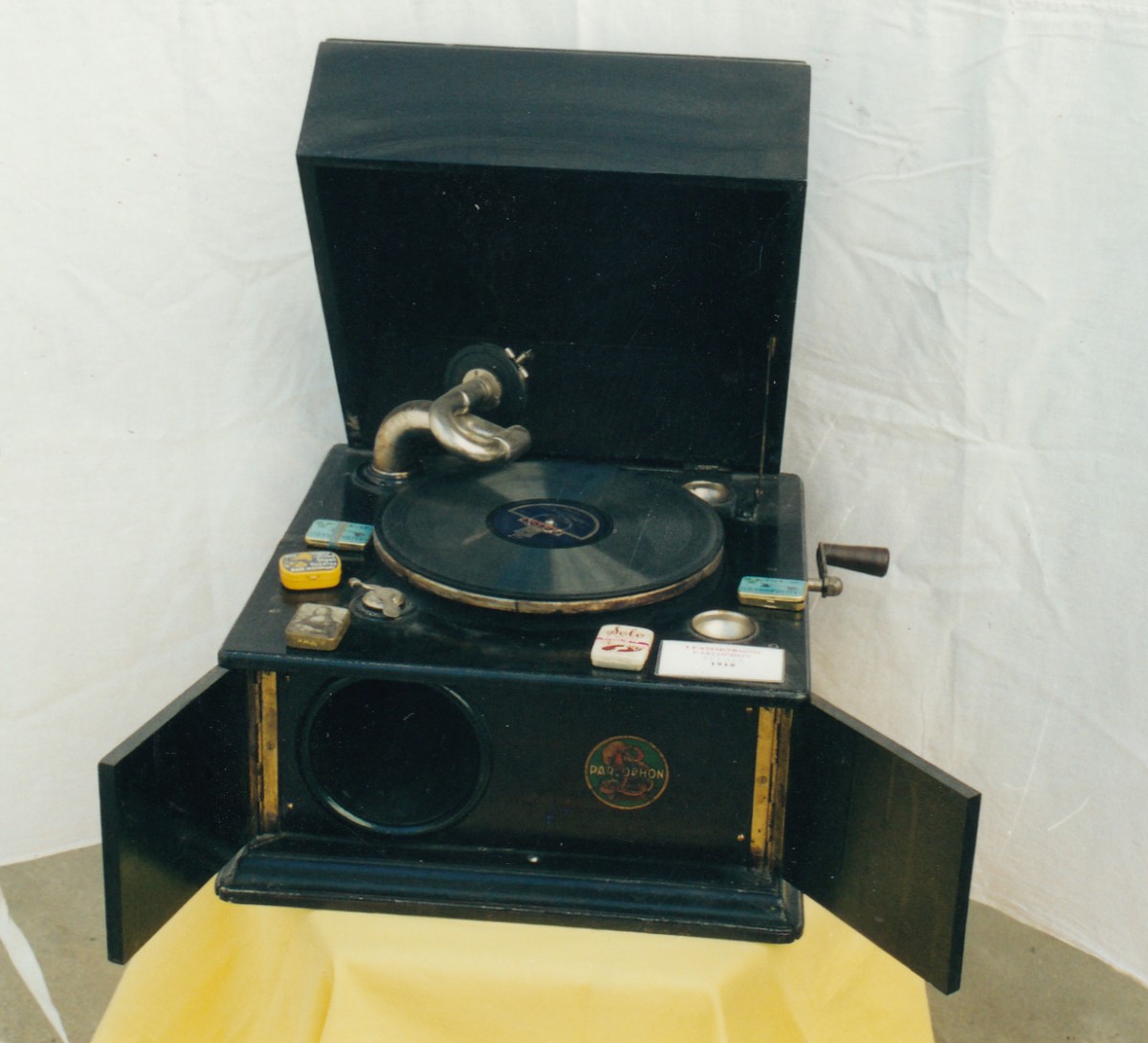 Επάνω στο πλατό βλέπουμε διάφορα κουτάκια όπου περιέχουν τις βελόνες του γραμμοφώνου. Σημαντική λεπτομέρεια ήταν, ότι ο κάθε δίσκος ήθελε αλλαγή της βελόνας. Έπαιζε βέβαια και με την ίδια βελόνα, αλλά για άριστη απόδοση έπρεπε να αλλάζει η βελόνα σε κάθε δίσκο ή έστω ανά δύο ή τρείς δίσκους.