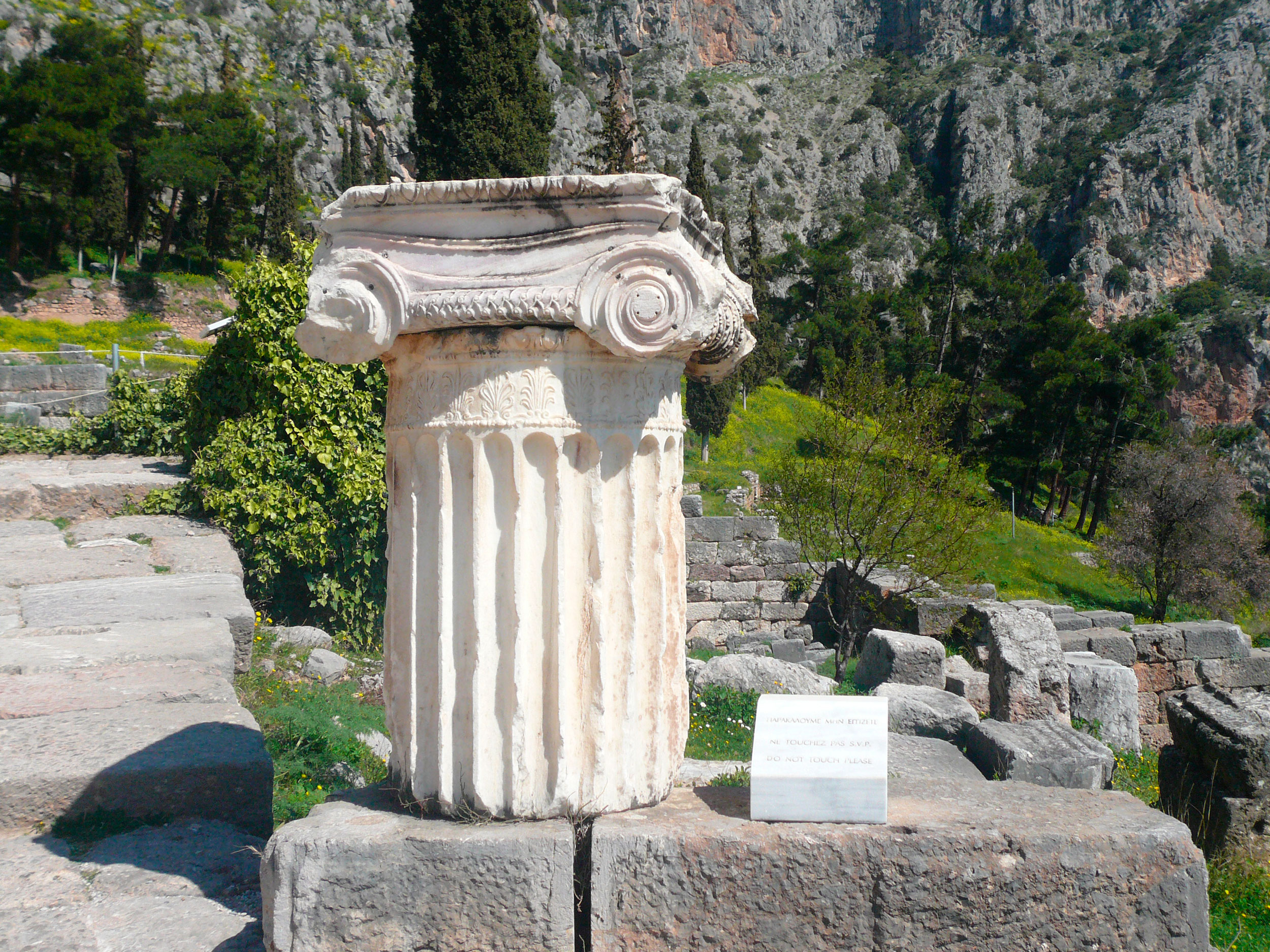 Τμήμα κίονα της Ιεράς Οδού, μπροστά από τη Στοά των Αθηναίων, στον αρχαιολογικό χώρο των Δελφών