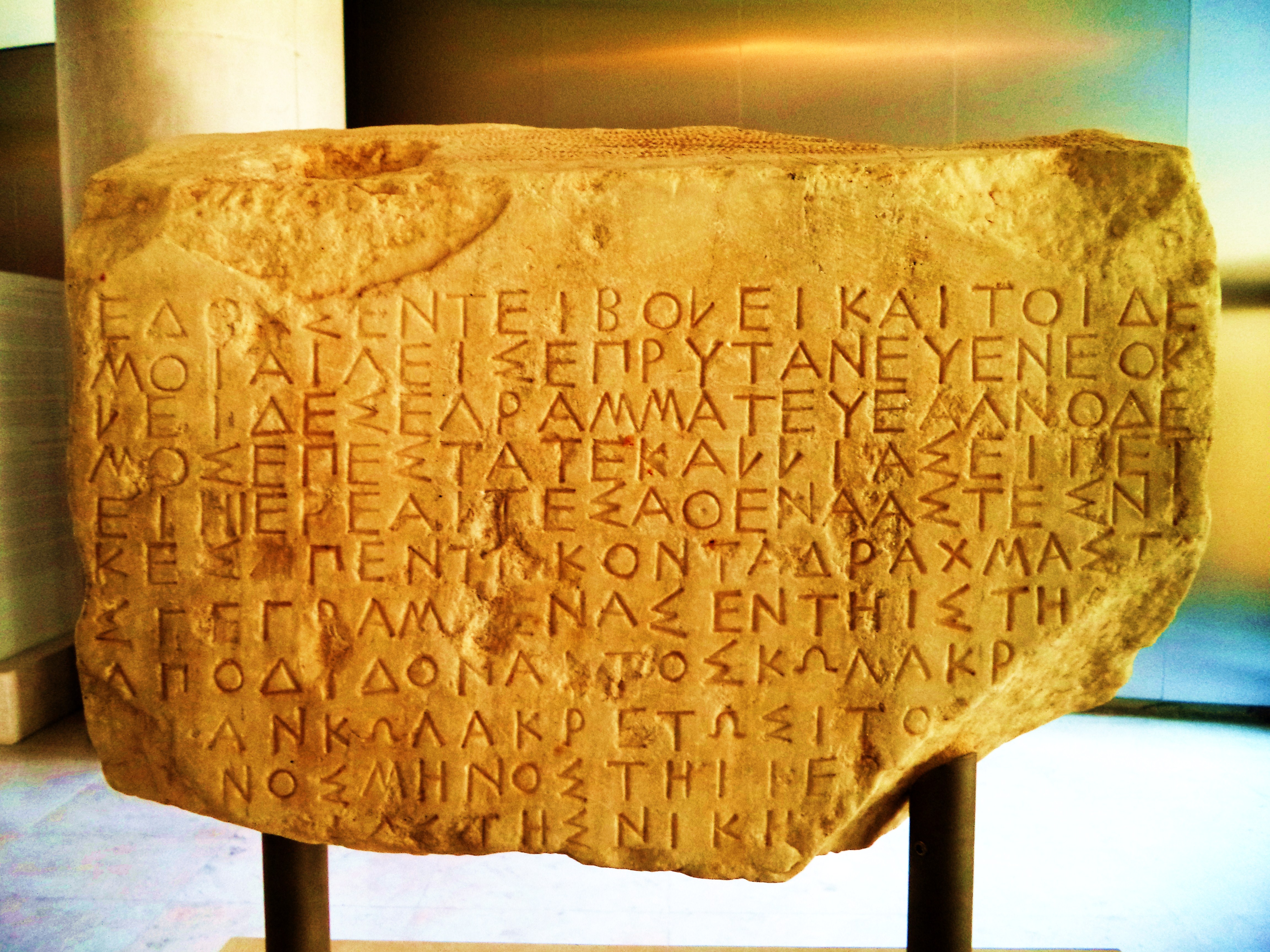 Επιγραφή που καταγράφει την απόφαση της βουλής περί το μισθό των ιερέων του ιερού της Αθηνάς Νίκης στην Ακρόπολη Αθηνών. 4ος αι. BCE. Νέο Μουσείο Ακρόπολης